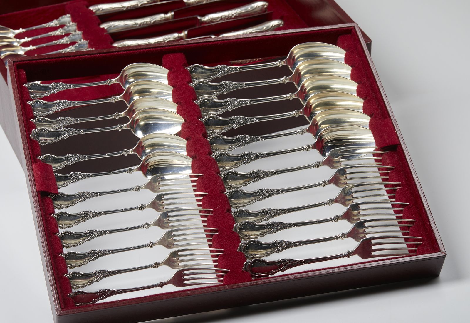 Servizio di 50 posate in argento per sei, in contenitore originale