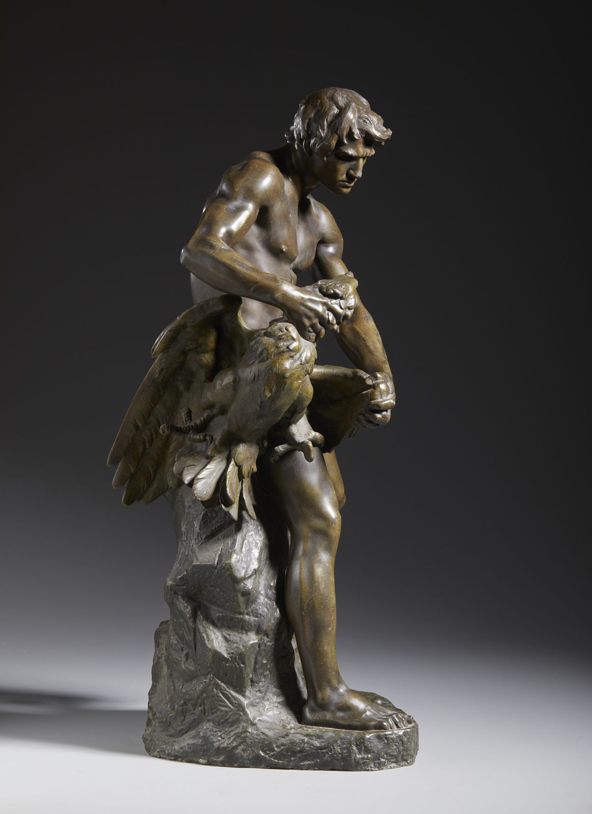 Uomo in lotta con un aquila