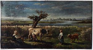 Anonimo del XIX-XX secolo Scena di campagna con mungitura della mucca
