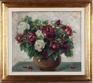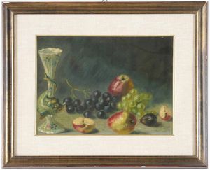 Anonimo del XX secolo Natura morta con vaso e frutta