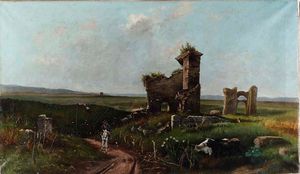 Anonimo del XIX secolo Paesaggio con architetture e figure