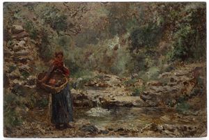Salvatore Marchesi (1852-1926) Bambina con fiori di ciliegio