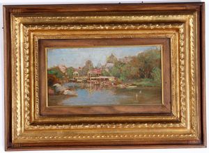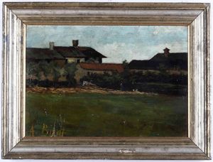 Alfredo Müller (1869 - 1939), attribuito a Veduta di case