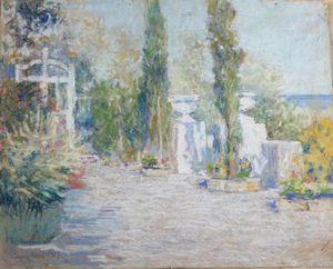 Pittore del XIX-XX secolo Veduta di giardino