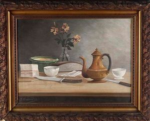 olio su tela, Largh. 75 - Prof. 51 Cm