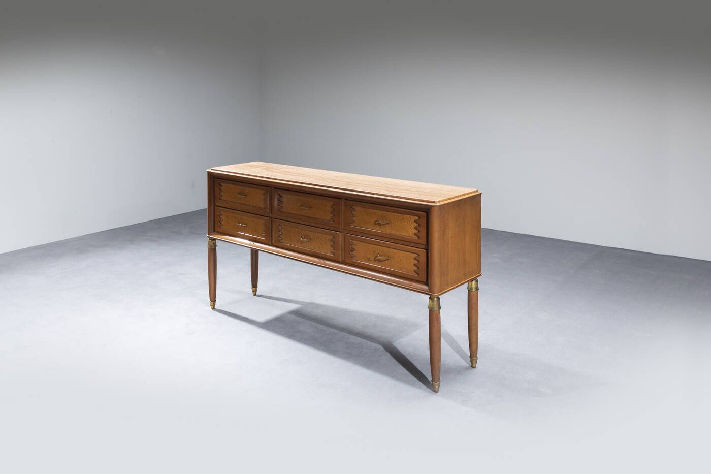 Cassettiera in legno chiaro piano in marmo particolari in ottone. Anni '50 cm 89 5x167x41 Difetti
