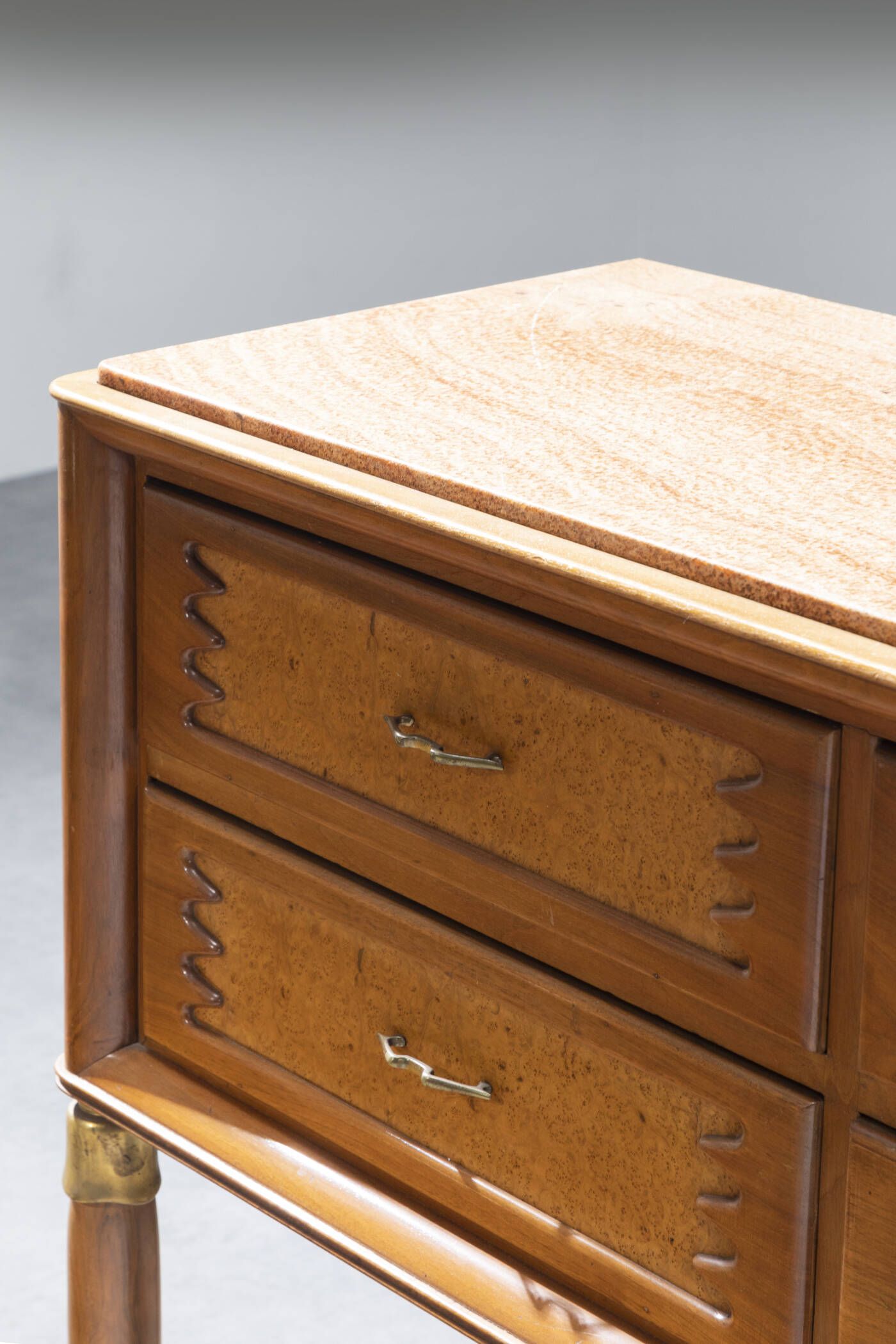 Cassettiera in legno chiaro piano in marmo particolari in ottone. Anni '50 cm [..]