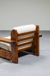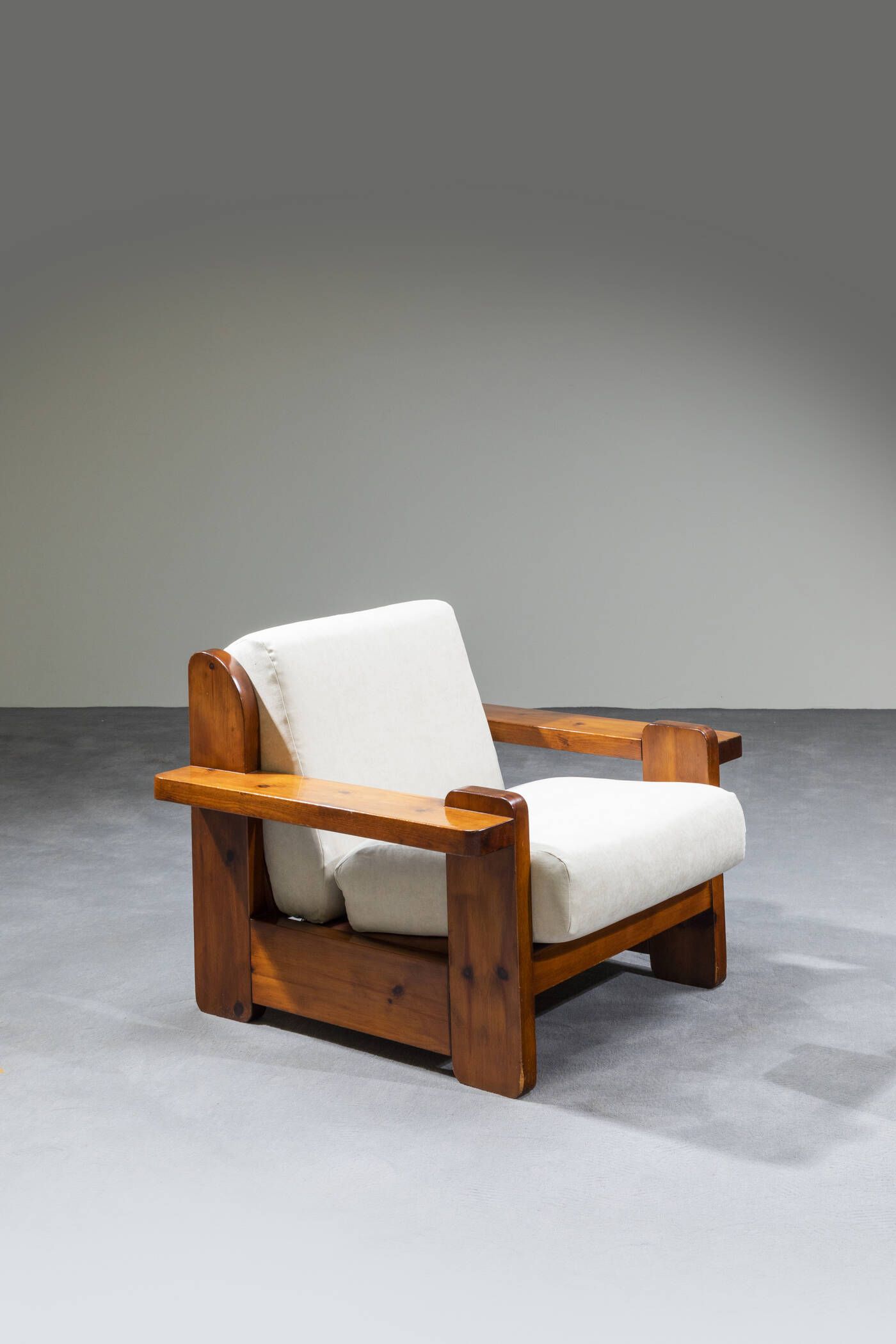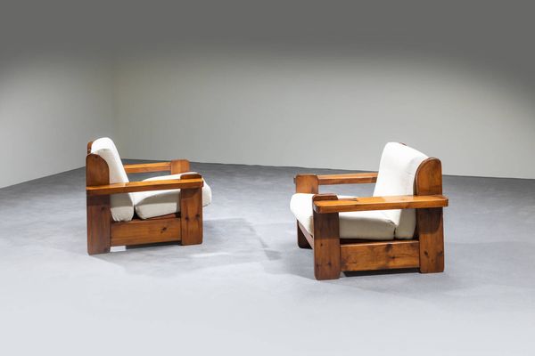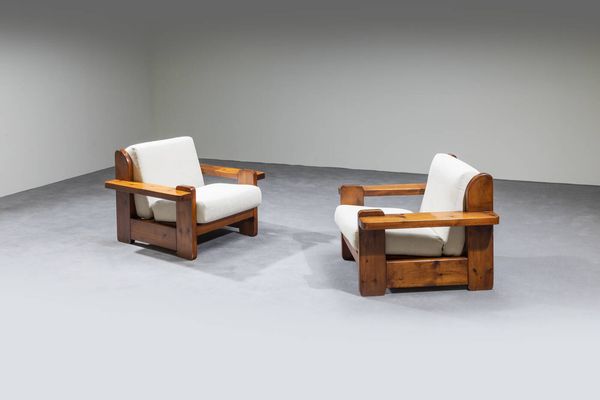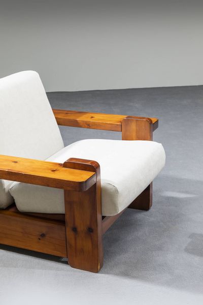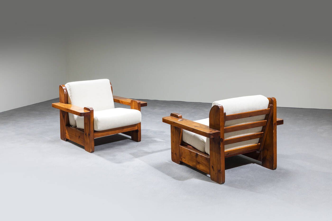 Coppia di grandi poltrone in stile rustico con struttura in legno e imbottitura [..]