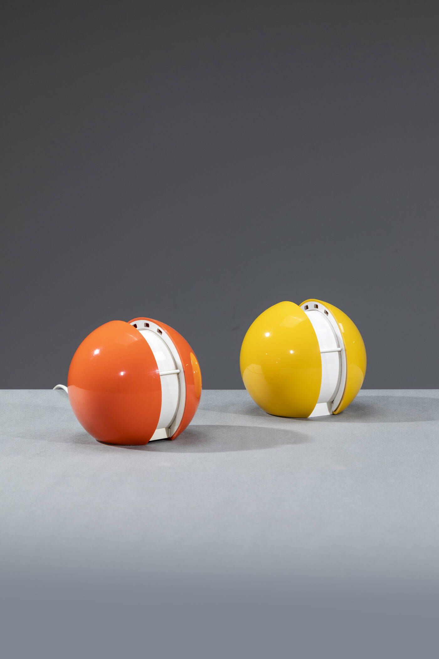 Coppia di lampade da tavolo Gea in resina Abs di color giallo e arancio. Anni '70 [..]