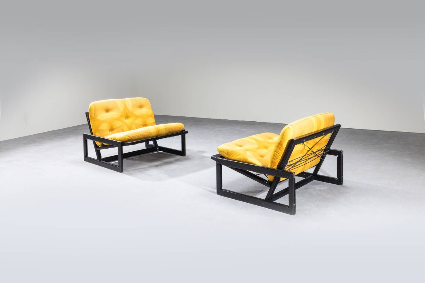 Legno di frassino cuscini imbottiti rivestiti in tessuto. Prod. Cassina 1967 cm 88x71x80 Bibl.: Giuliana Gramigna Repertorio del Design Italiano1950-2000 Allemandi 2011 pag. 134