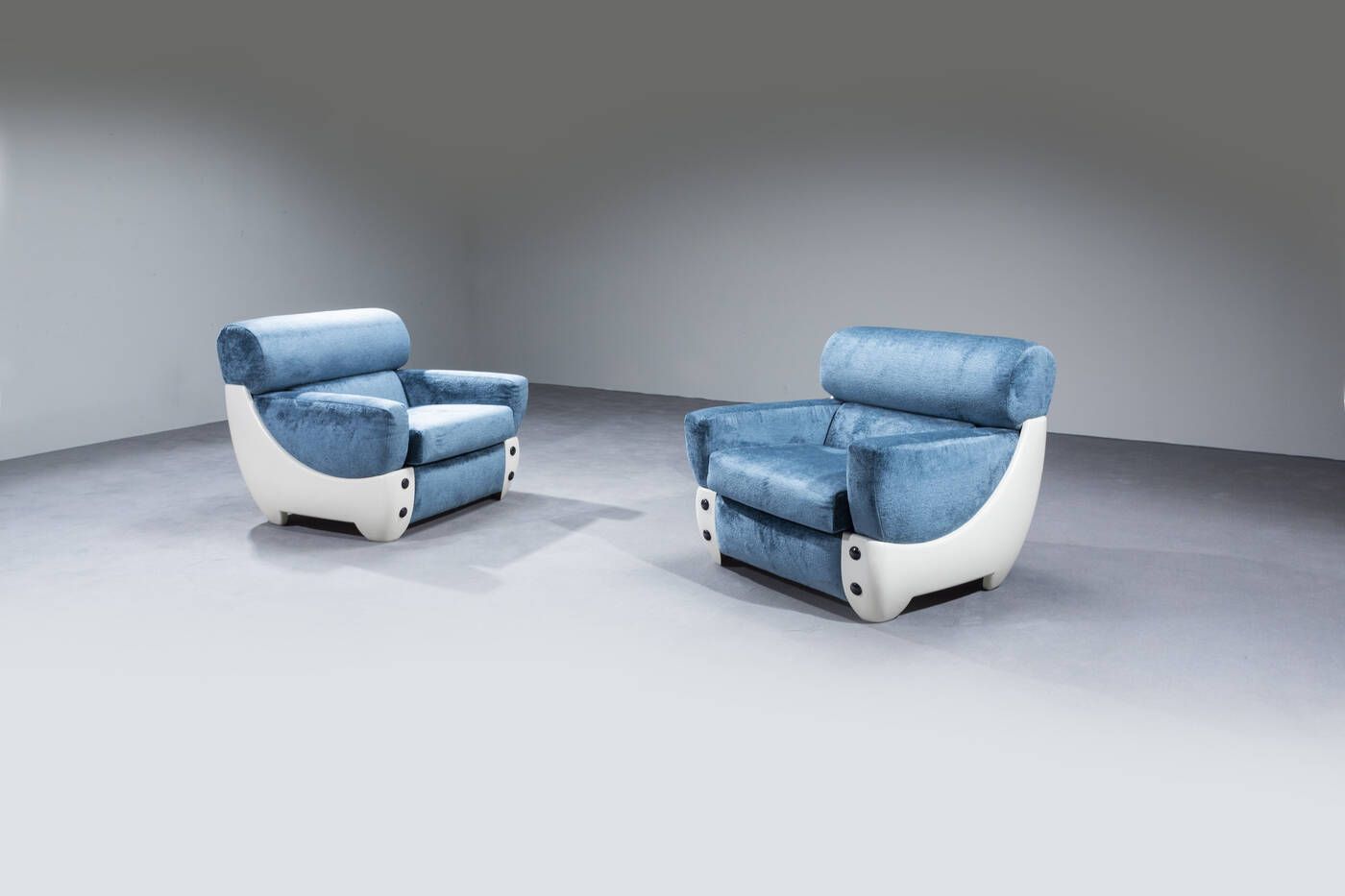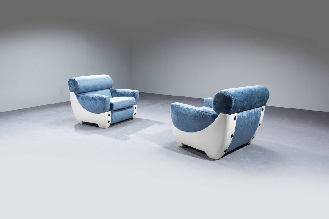 Coppia di poltrone Space Age con struttura in vetroresina e imbottitura rivestita [..]