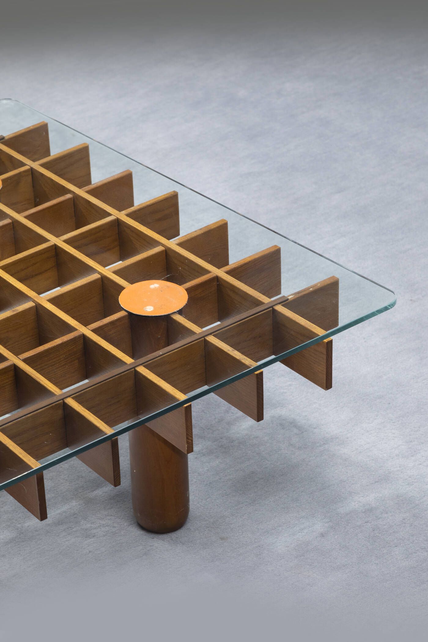 Coppia di tavolini con struttura a doghe in legno piano in vetro. Anni '70 cm 34 [..]