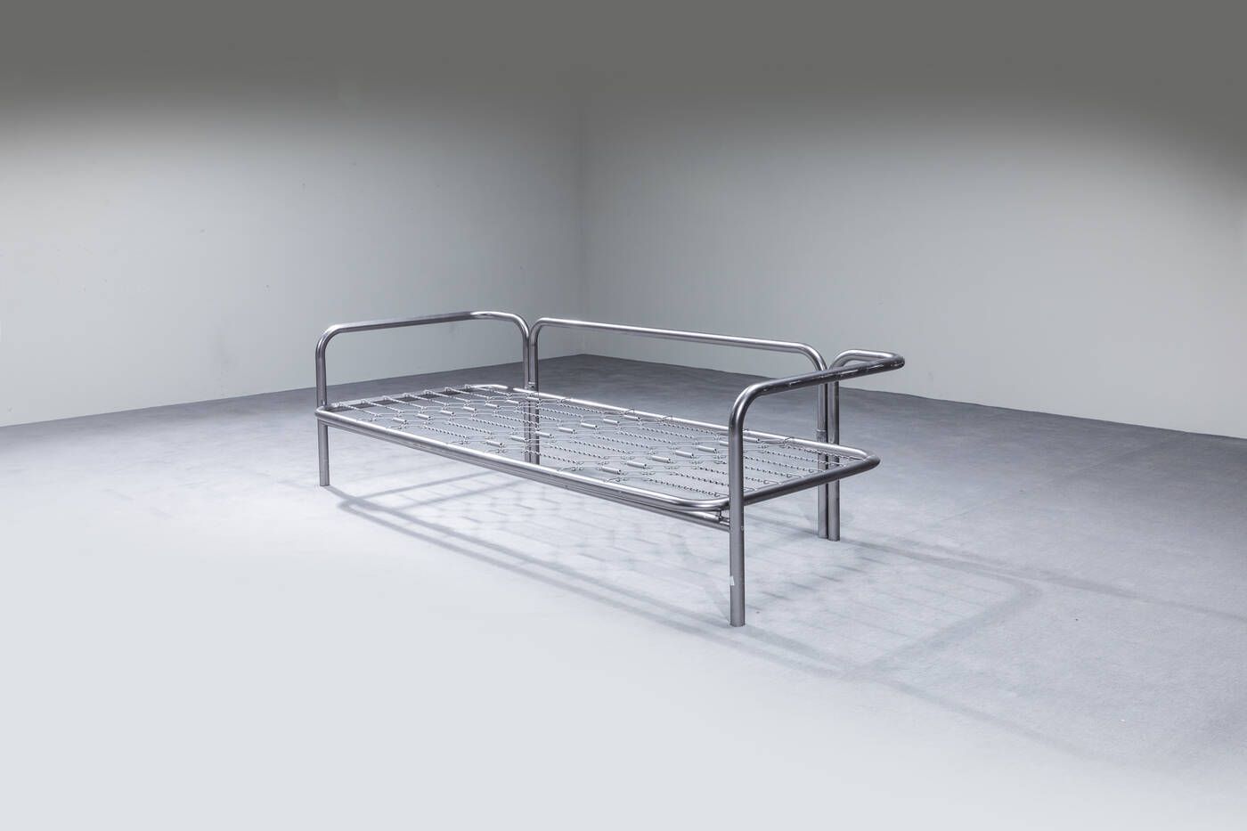 Struttura in metallo cromato. Prod. Poltronova 1965 cm 60x201x84 Bibl.: Giuliana Gramigna Repertorio del Design Italiano 1950-2000 Allemendi 2003 vol.1 pag. 108