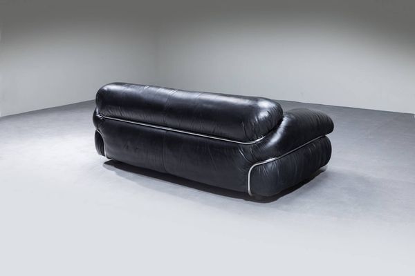 Struttura in acciaio cromato con rivestimento in pelle. Prod. Cassina anni '70 cm 67x175x100 Bibl.: Giuliana Gramigna Repertorio del Design Italiano 1950-2000 Allemandi 2011 pag. 174
