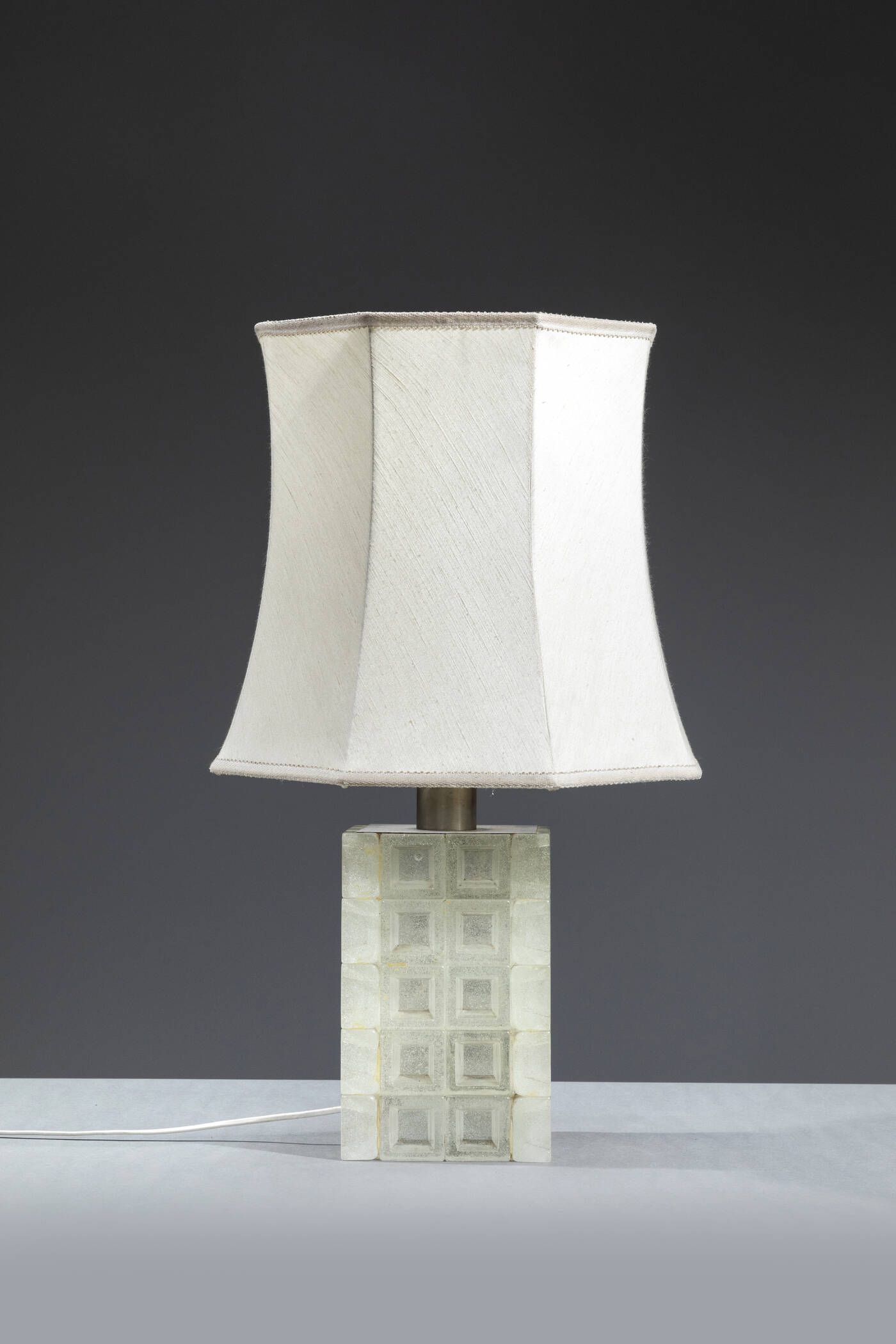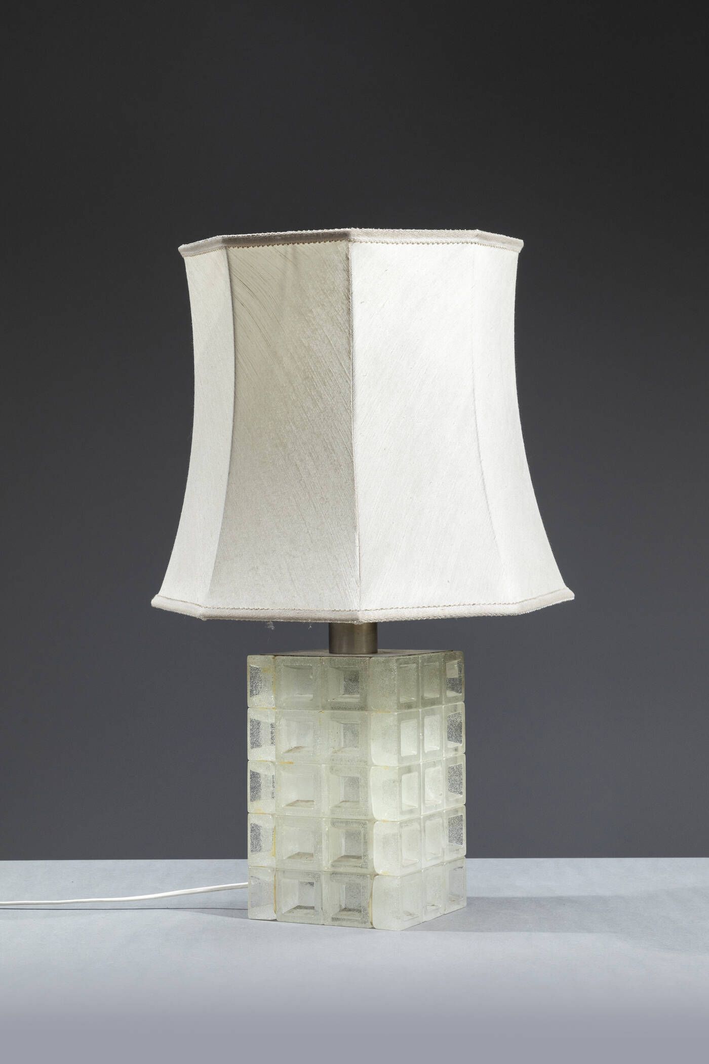 Lampada da tavolo costituita da parellelepipedi di vetro incolore. Prod. Poliarte [..]