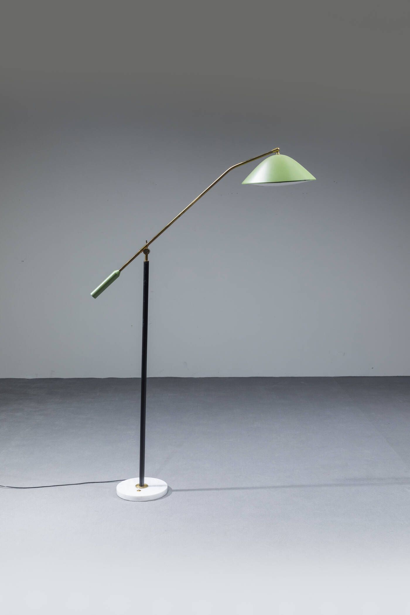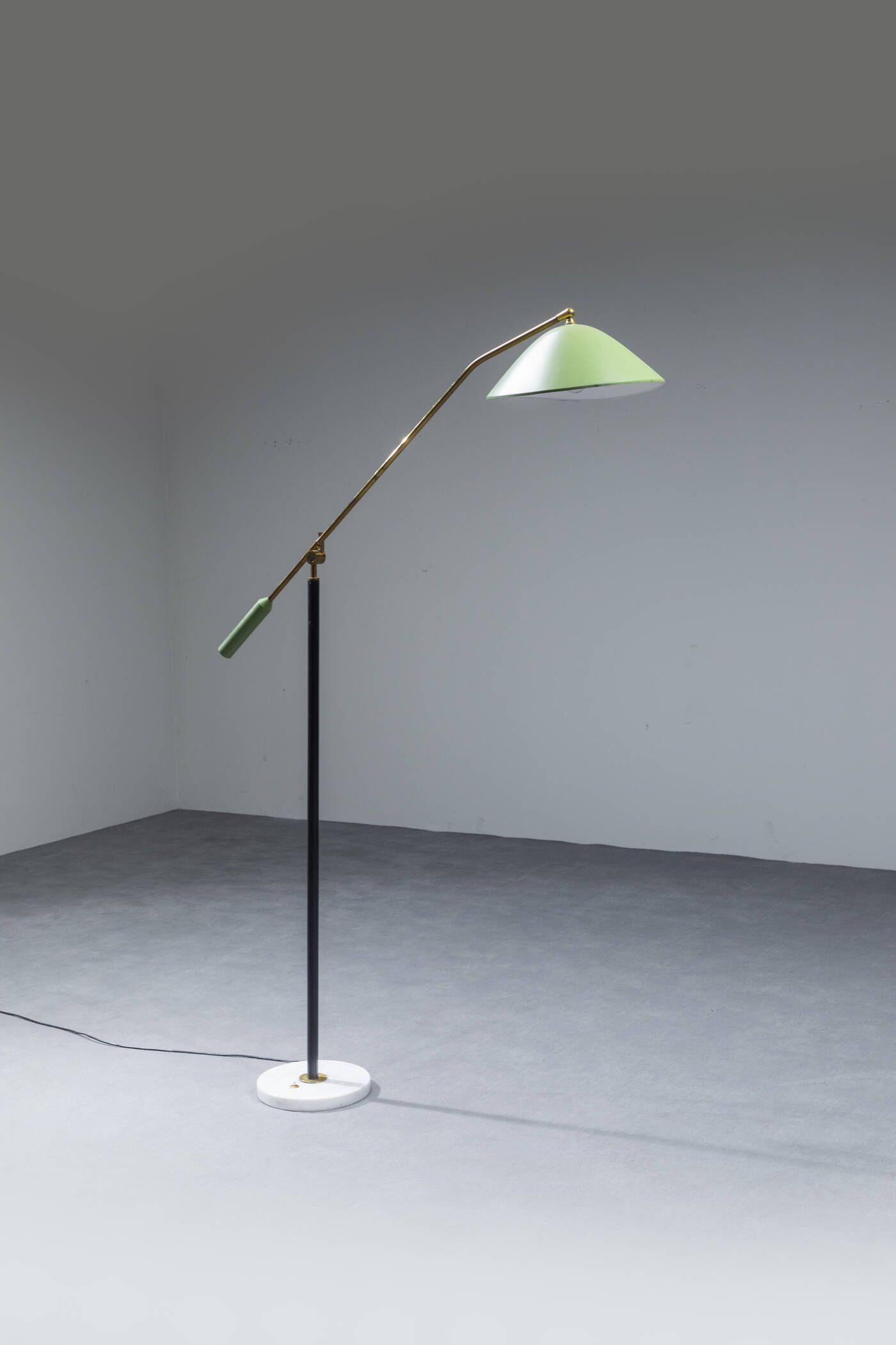 Lampada da terra con braccio regolabile in metallo verniciato e ottone base in marmo. Prod. Stilnovo anni '50 cm 198x125