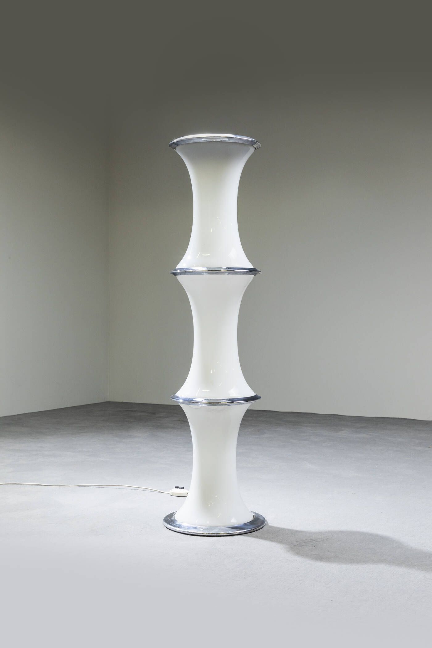 Vetro di Murano base e particolari in metallo cromato. Prod. Vistosi anni '70 h cm 130x32x32
