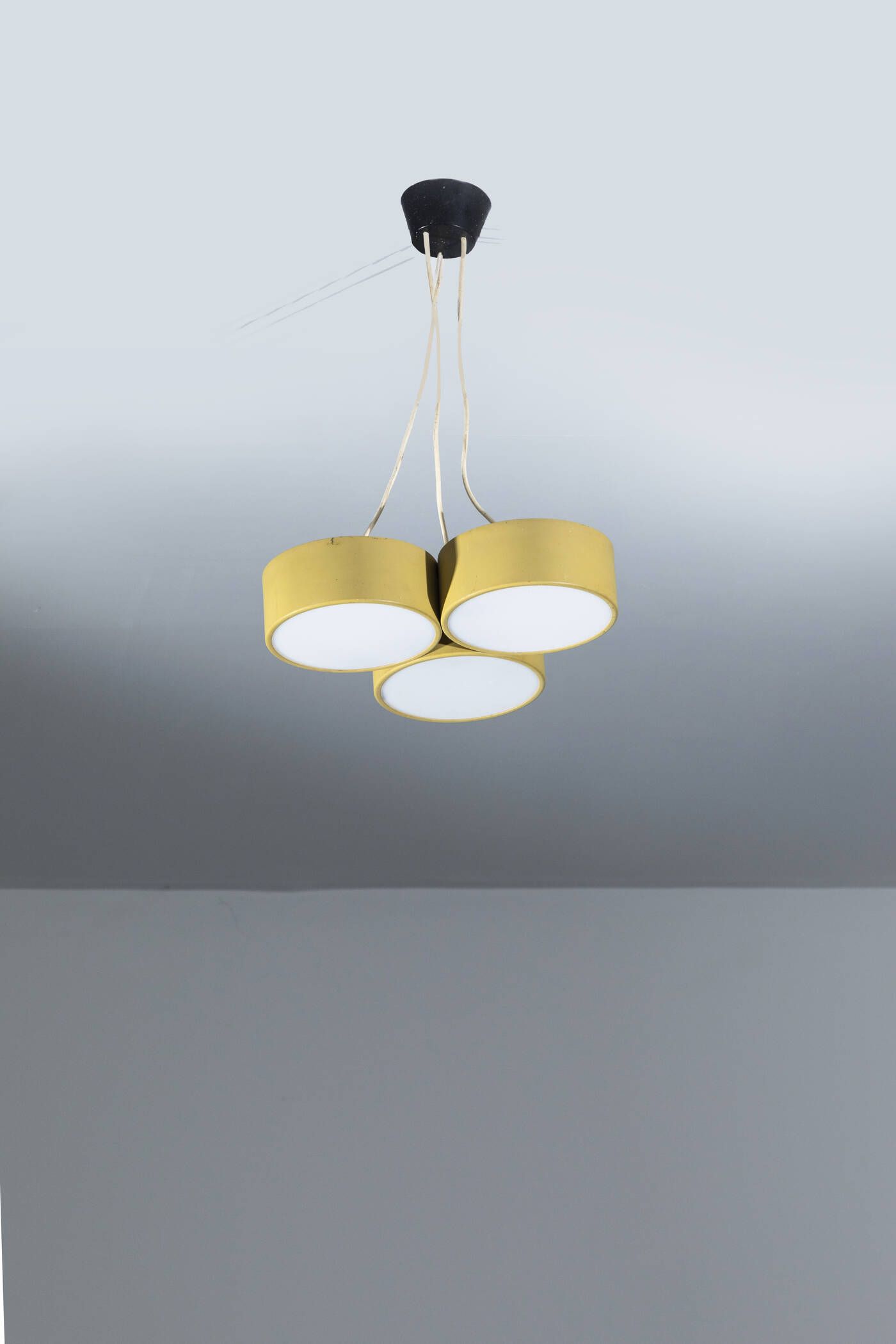 Lampadario con struttura in metallo verniciato diffusori in plexiglass. Anni '50 [..]
