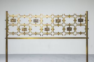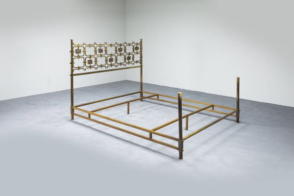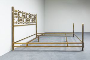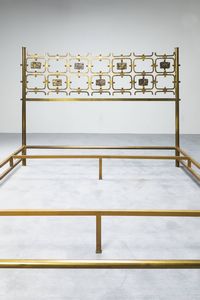 Letto in ottone piatto in acciaio laccato formelle in fusione di ottone di Arnaldo [..]