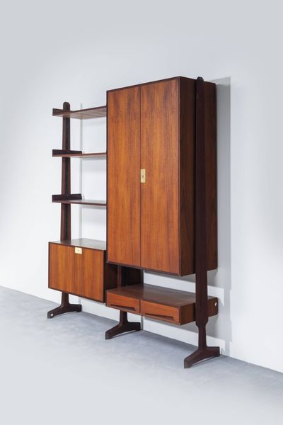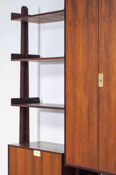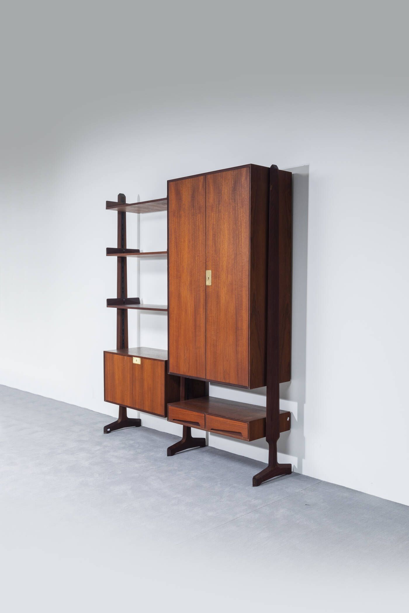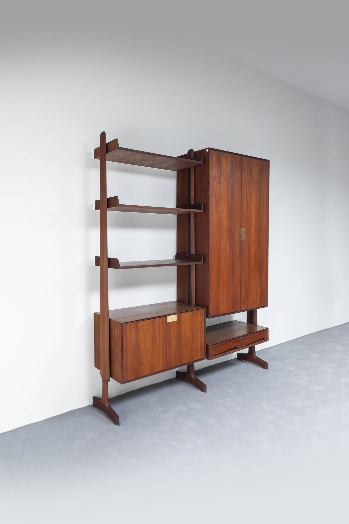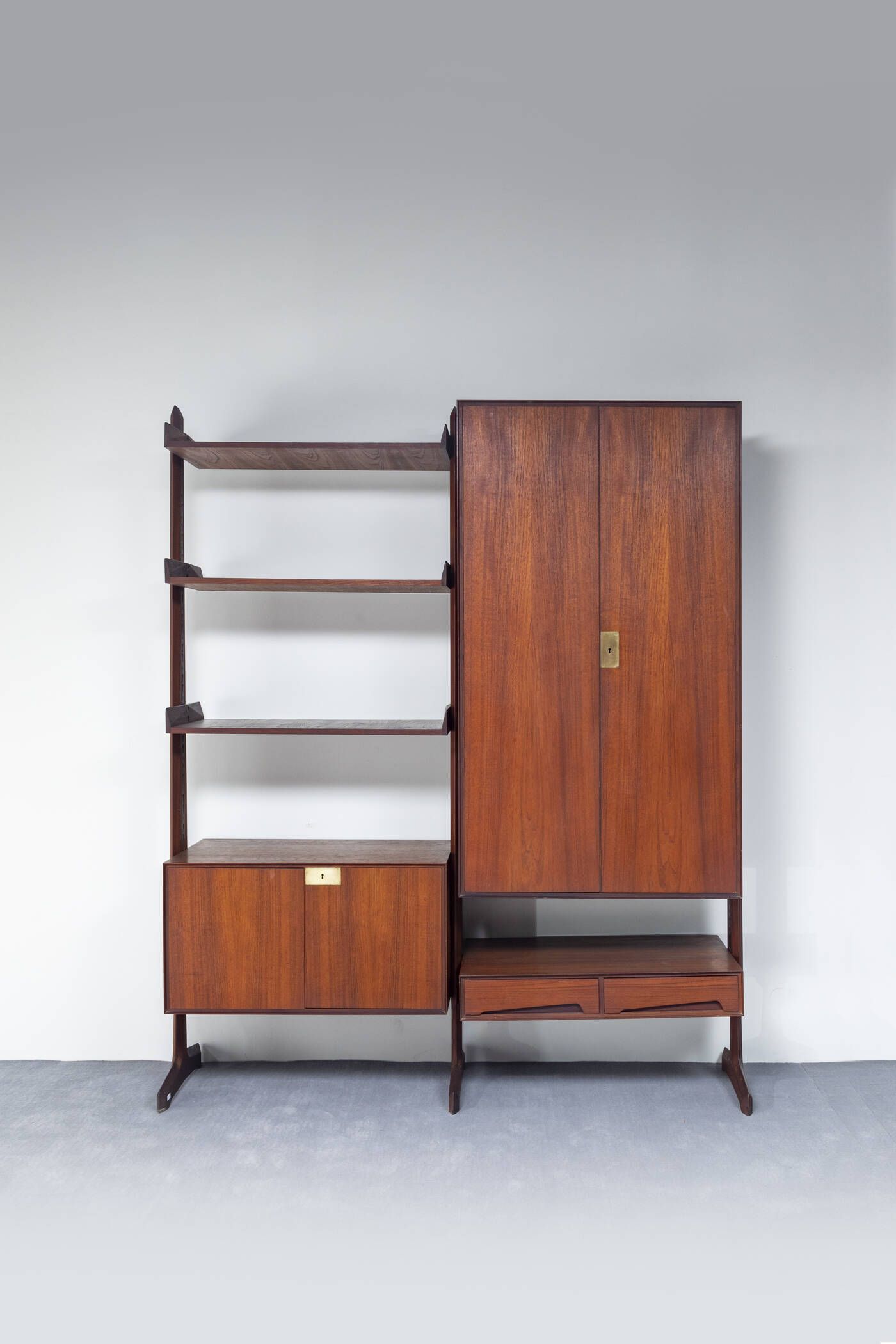 Libreria modulare in legno e ottone. Prod. Dassi Mobili Moderni Lissone anni '50 [..]