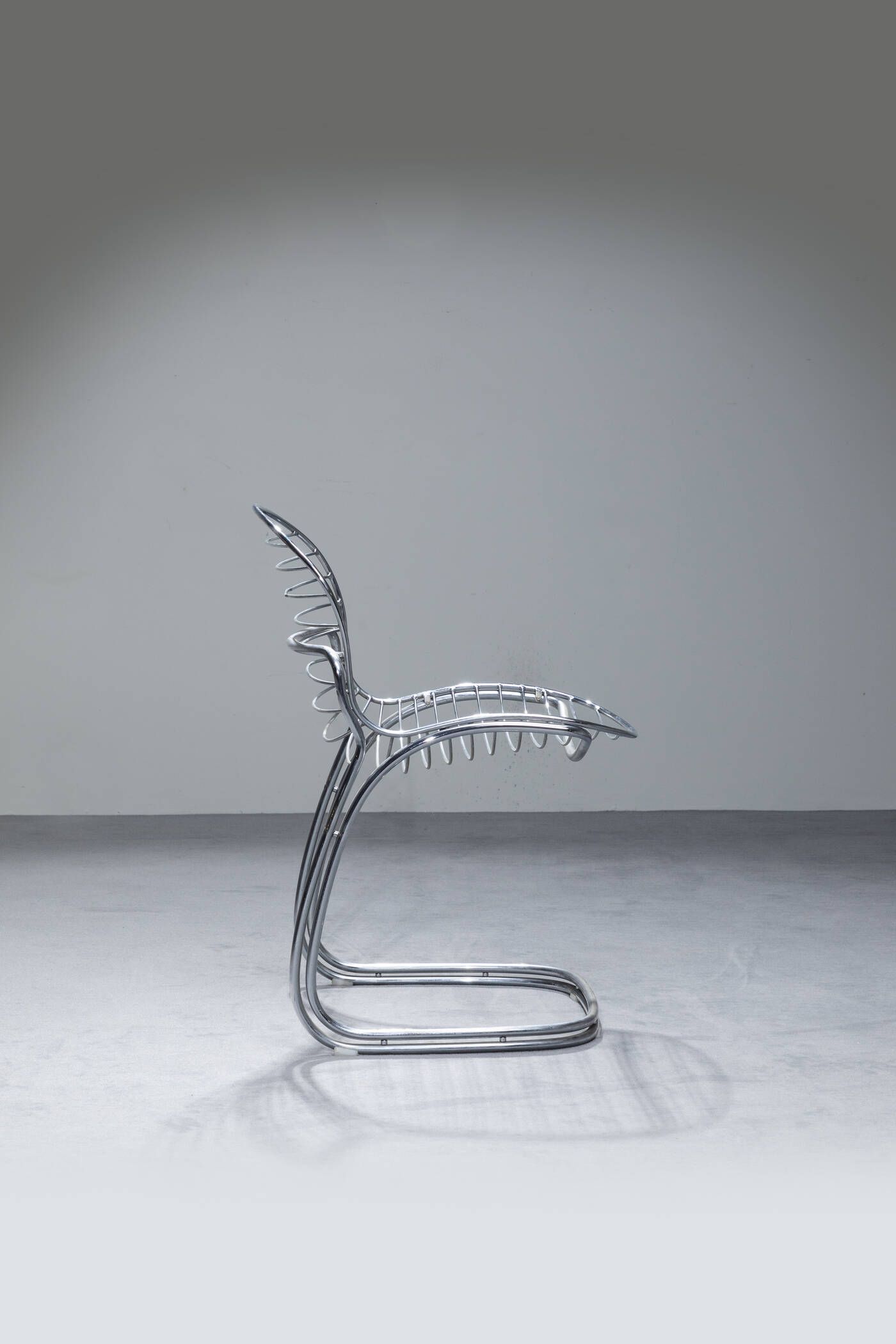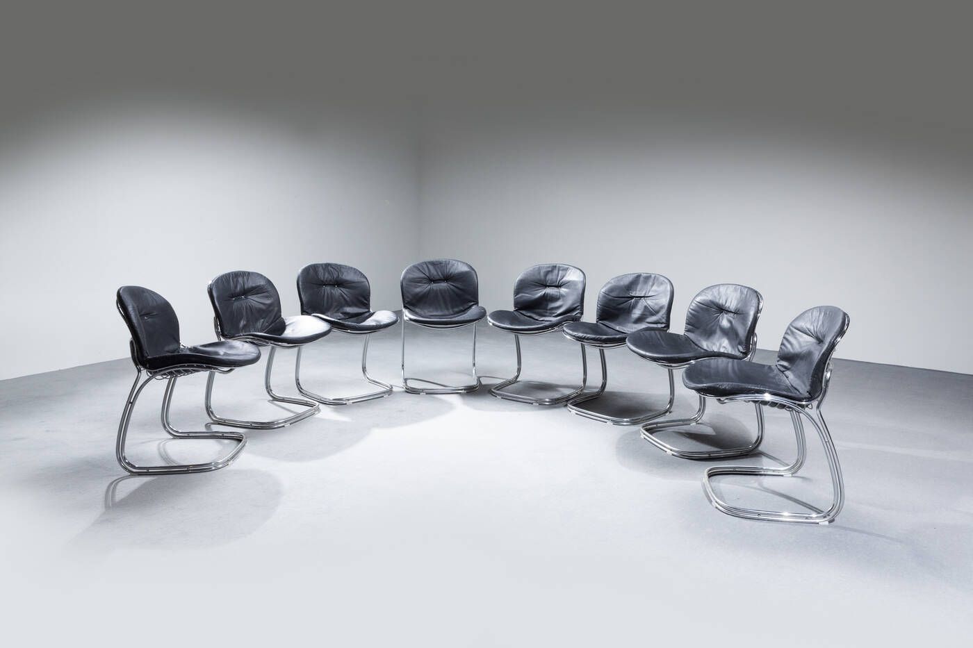 Struttura in metallo cromato e rivestimento in pelle. Prod. Rima anni '70 cm 82x53x62 Bibl.: Catalogo Gastone Rinalidi designer per la Rima a cura di Giuseppe Jacopo Drago pag. 200