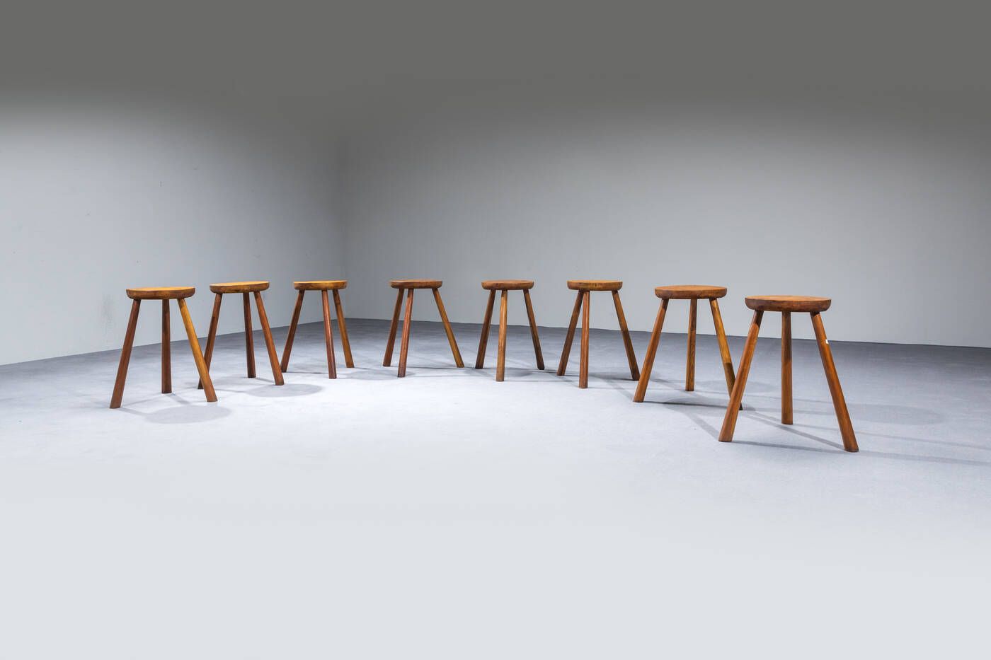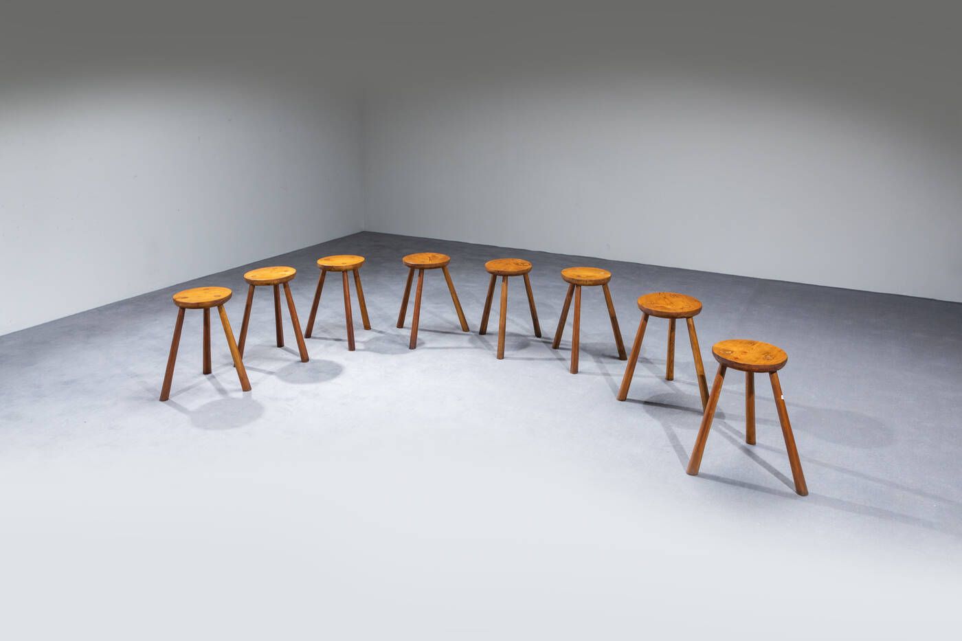 Otto sgabelli in legno massello. Anni '50 cm 50x40x40 (seduta) cm 28x28
