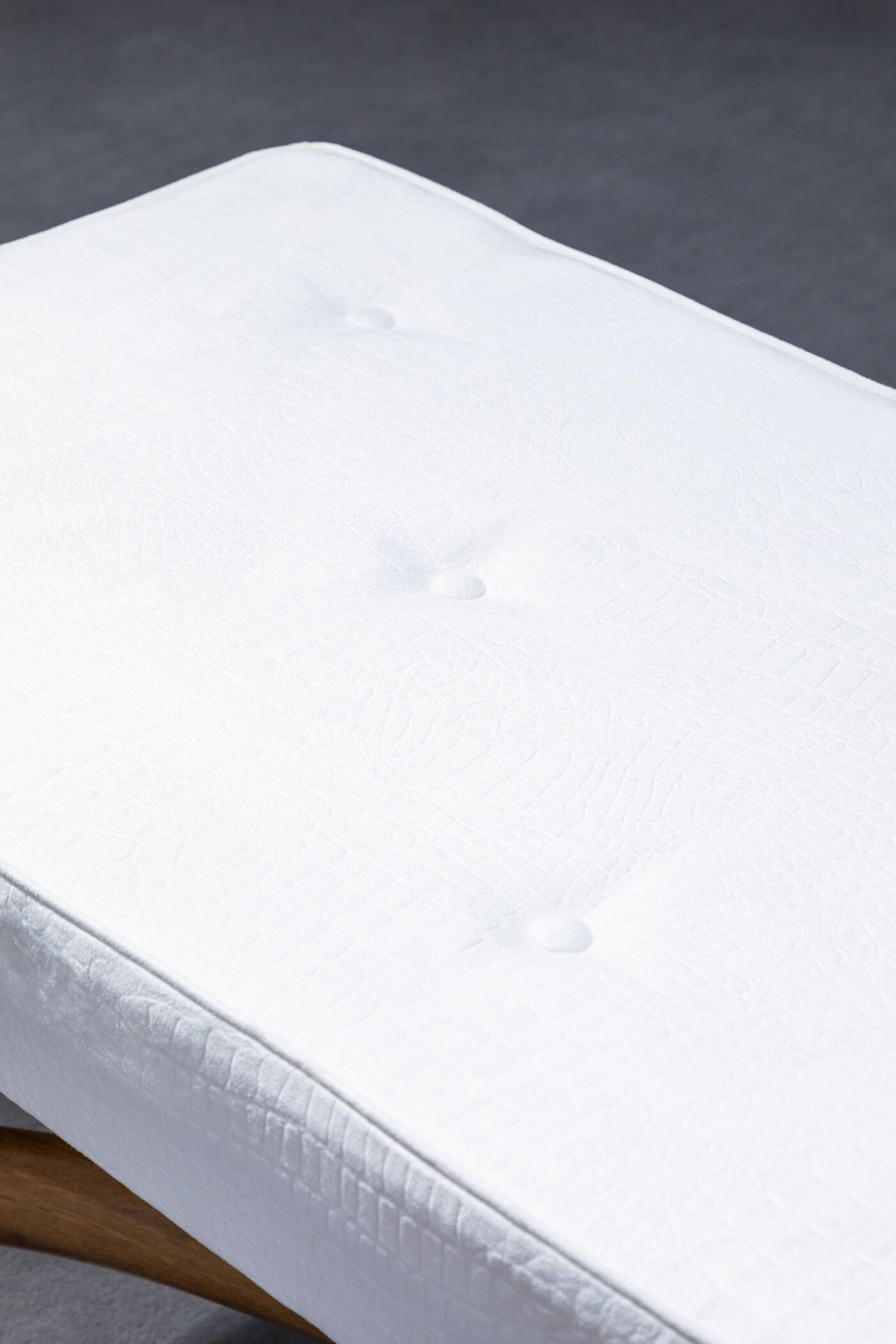 Telaio in legno imbottitura rivestita in fintapelle e particolari in ottone. Anni '50 cm 43x185x50