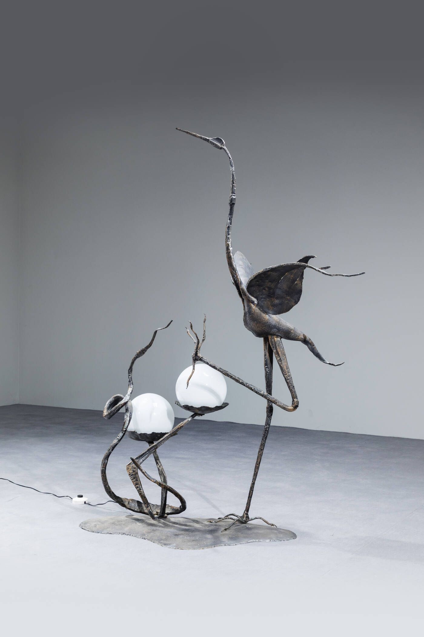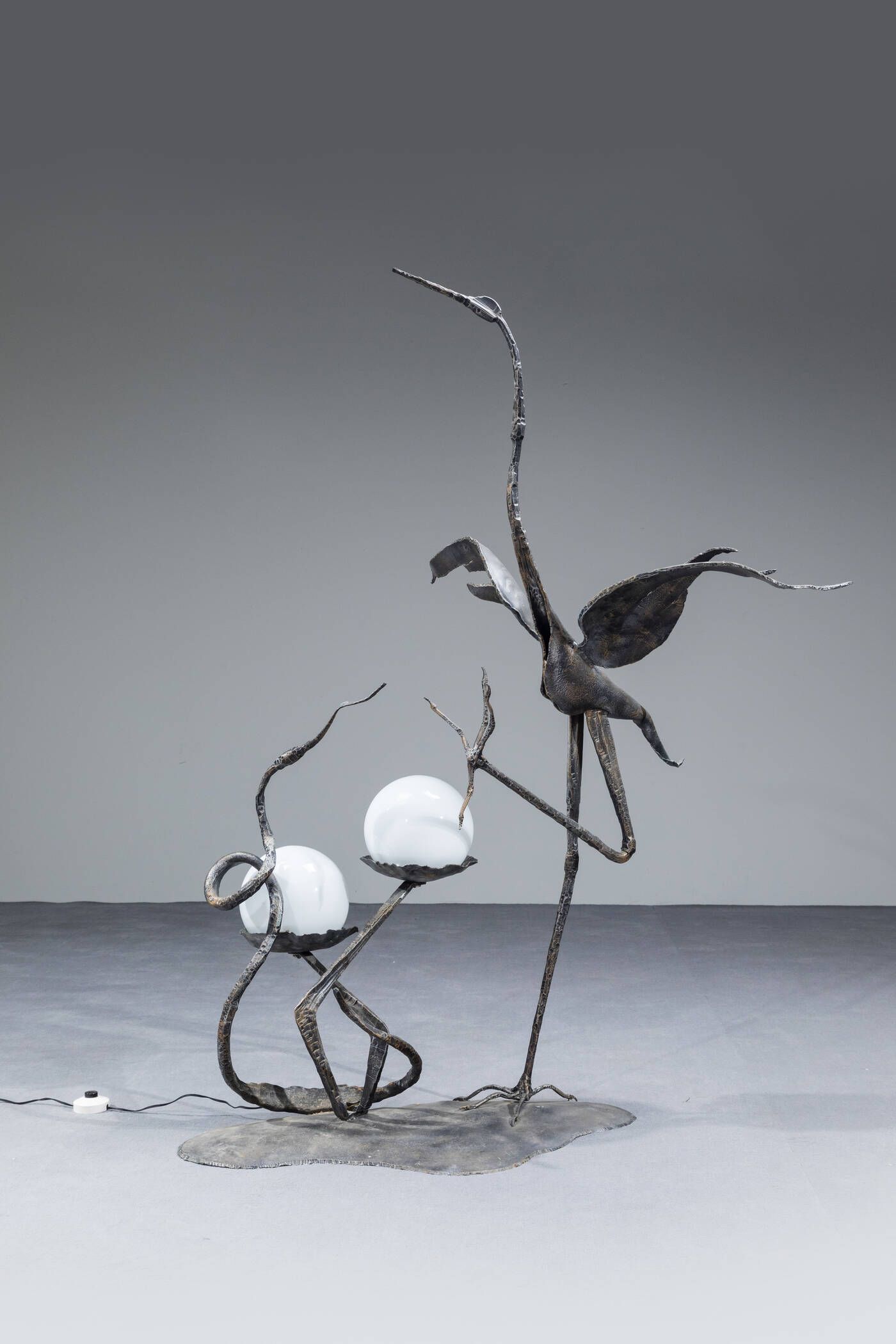 Piantana in ferro battuto in foggia di airone. Anni '60 h cm 150x105