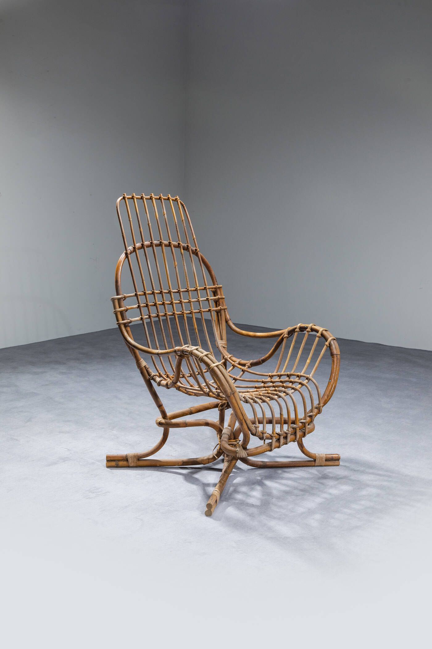 Poltrona con struttura in vimini. Anni '60 cm 116x80x75