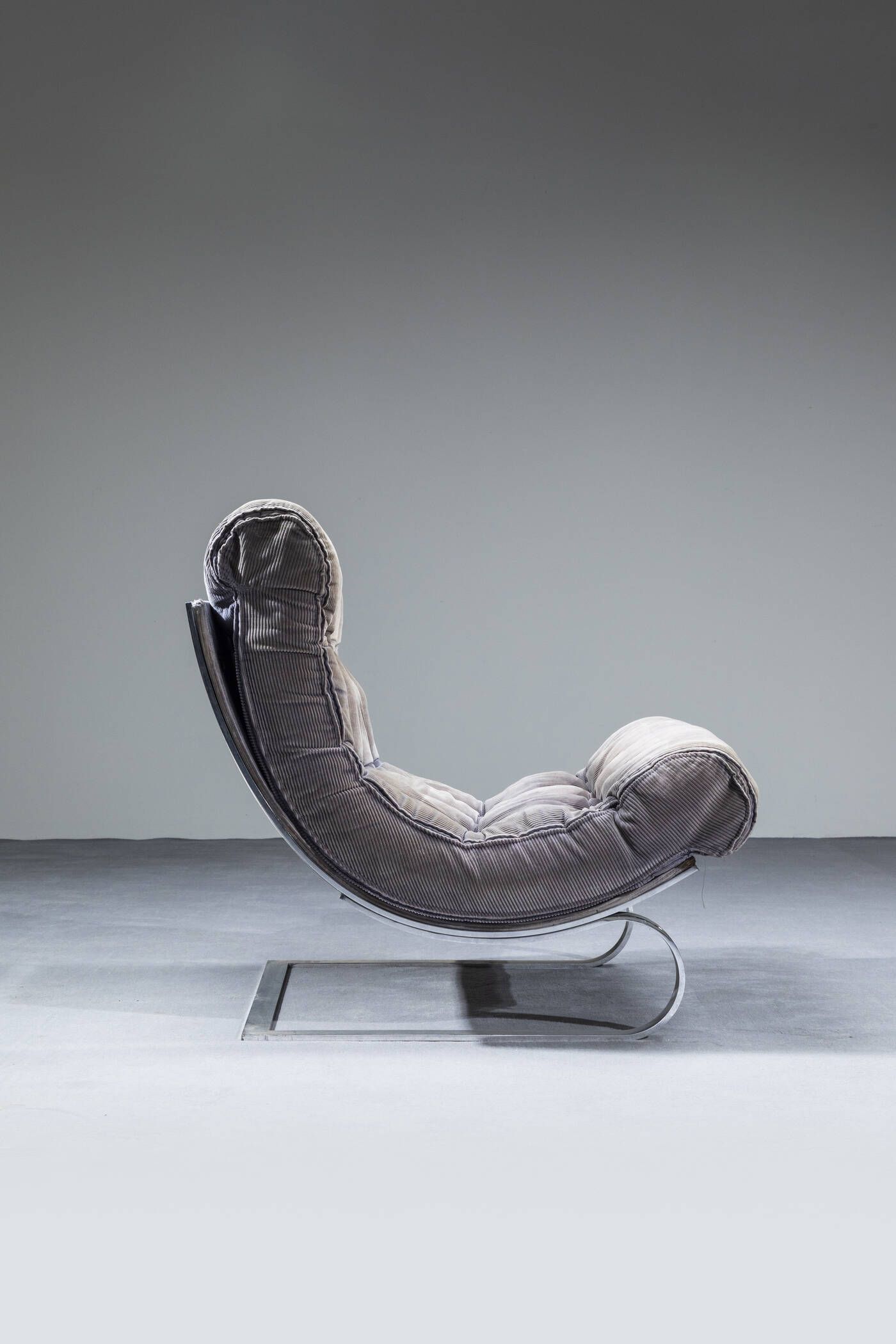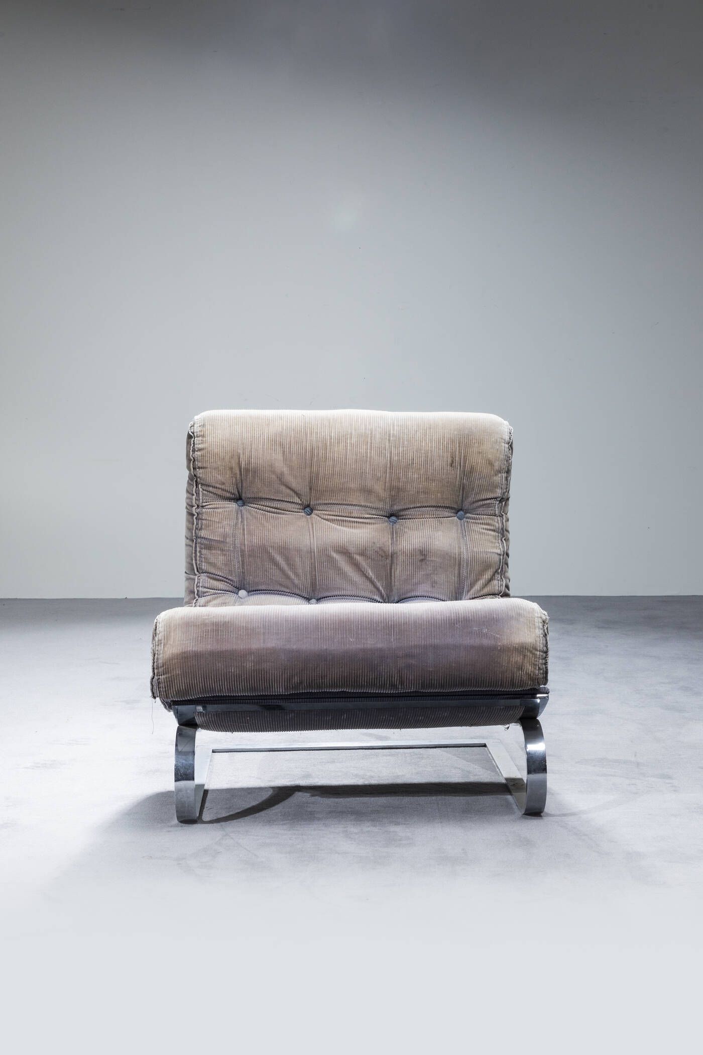 Struttura in acciaio cromato e tessuto imbottito. Prod. Cinova 1973 cm 80x75x75 Difetti