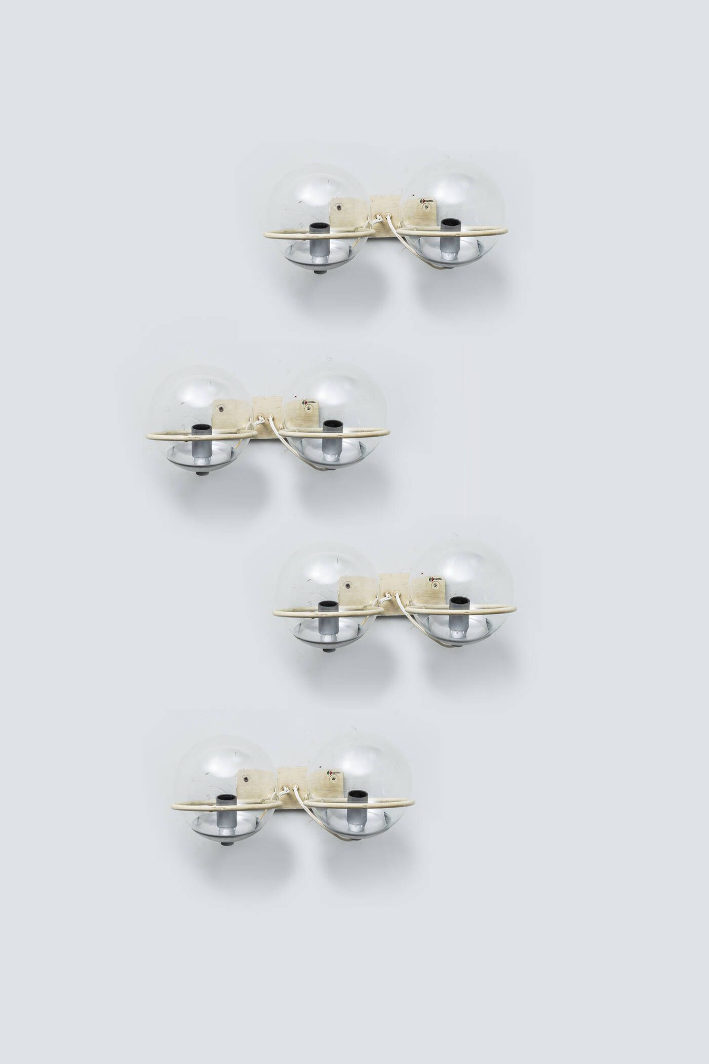 Quattro appliques mod. 238/2 con struttura in metallo laccato e diffusori in vetro. [..]
