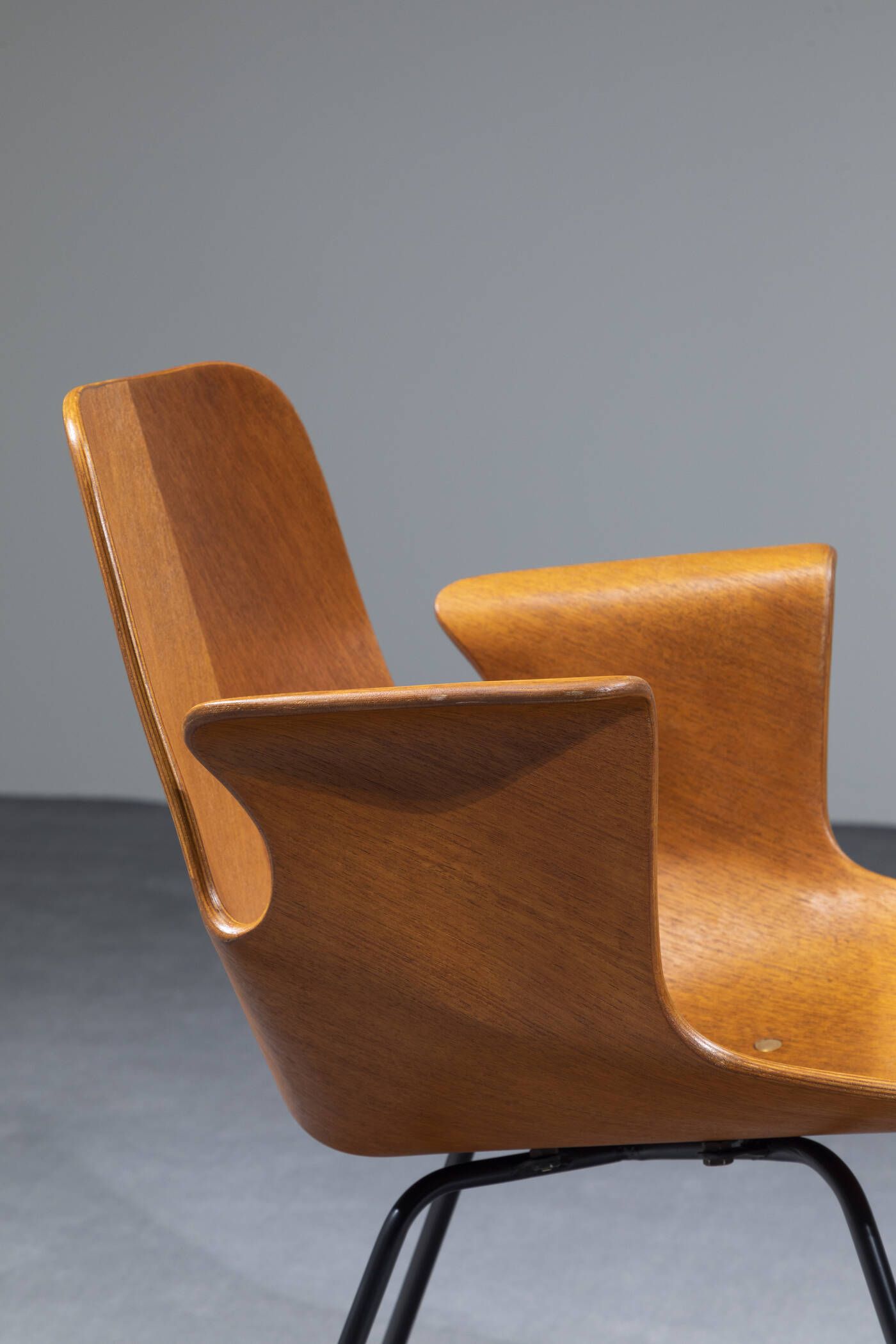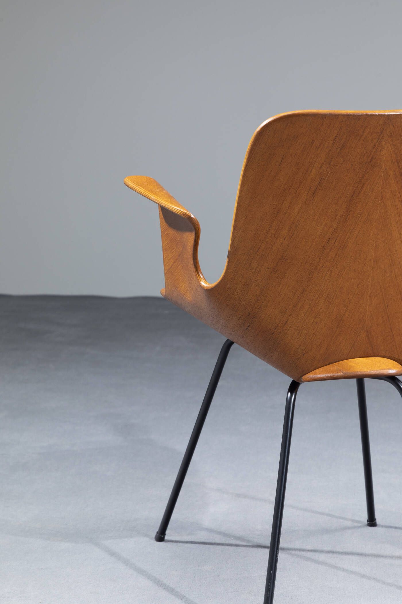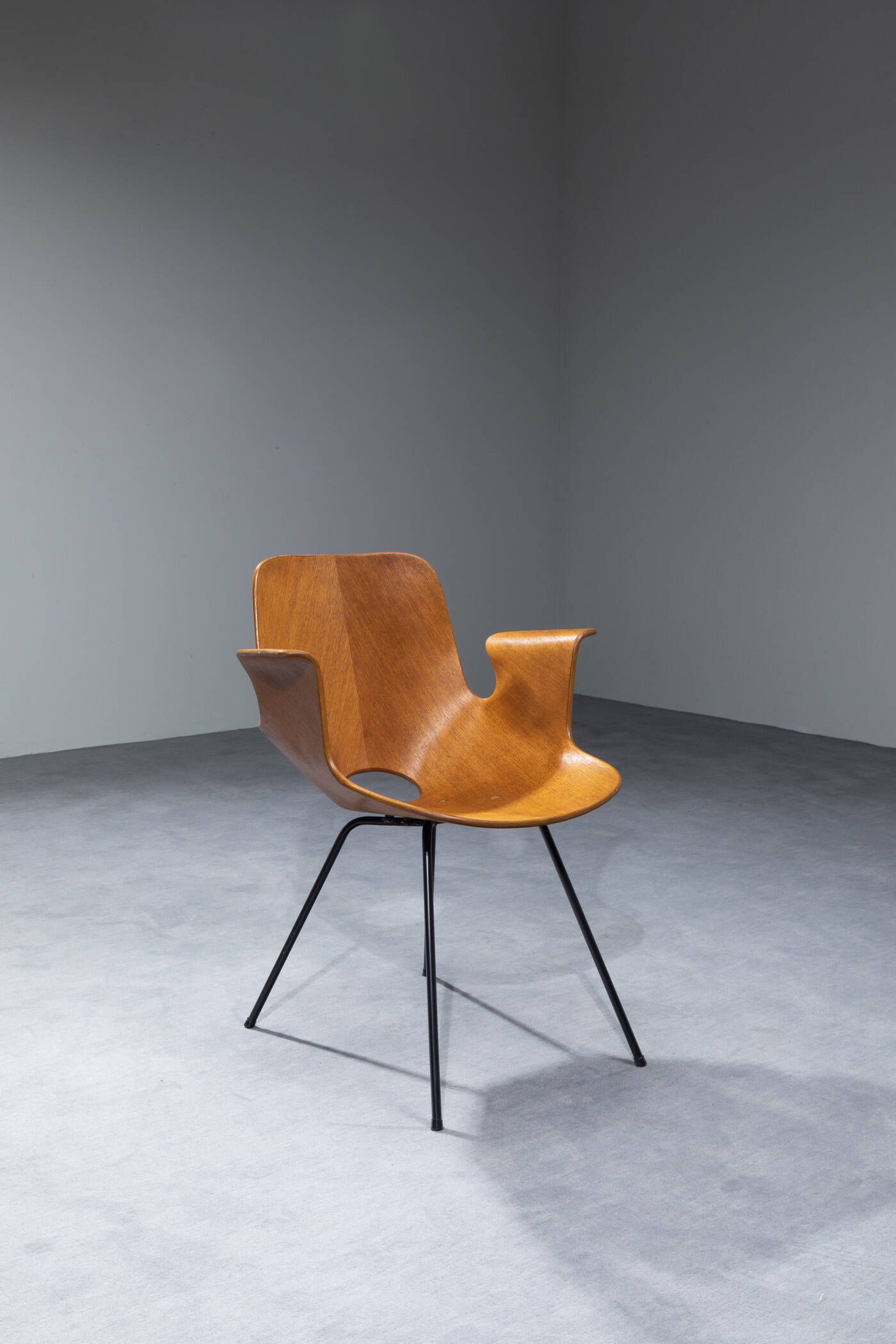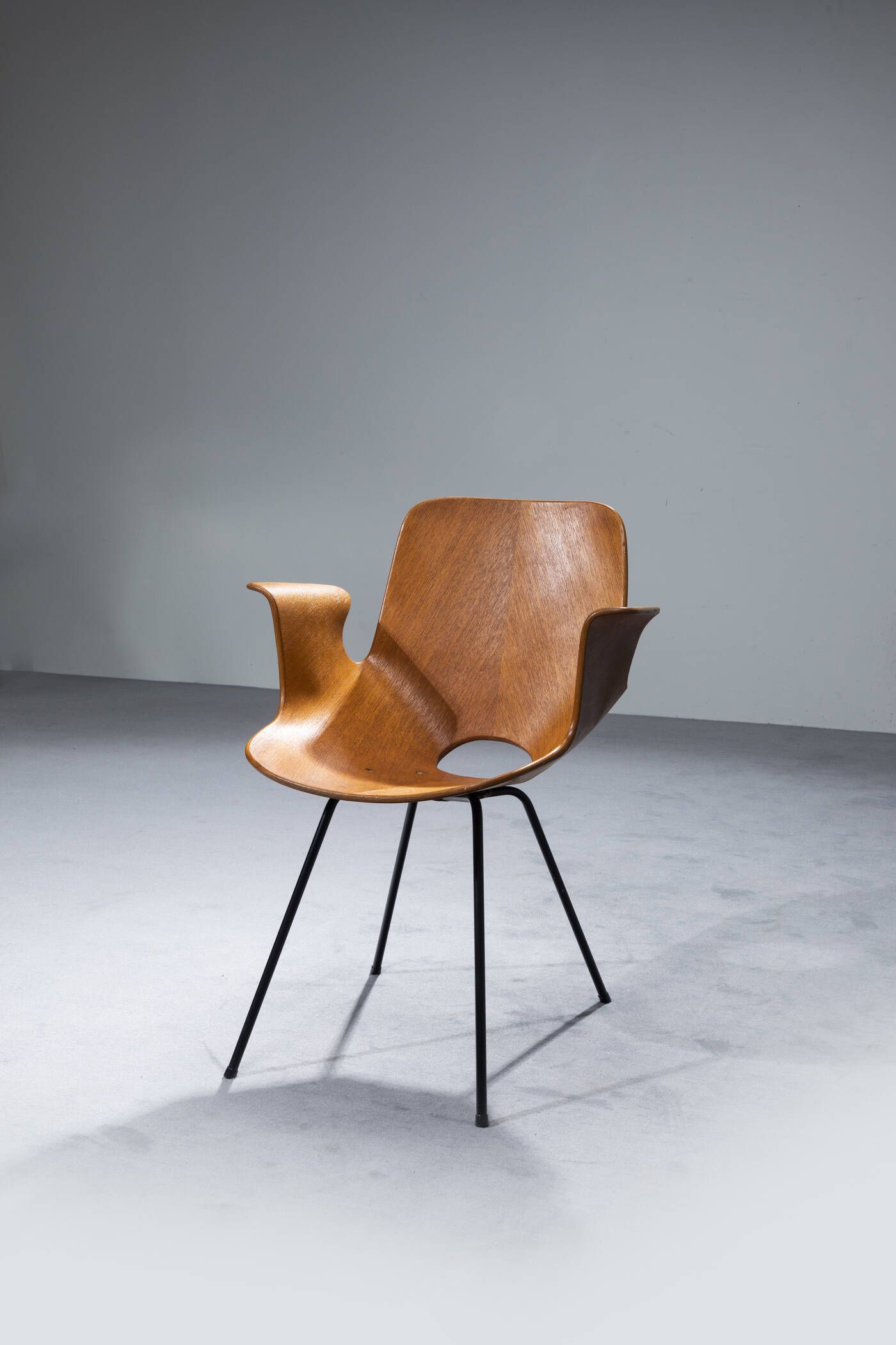 Compensato curvato e struttura in metallo laccato nero. Prod. F.lli Tagliabue anni '50 cm 78x60x55 Bibl.: Giugliana Gramigna Repertorio 1950-1980 Mondadori 1985.