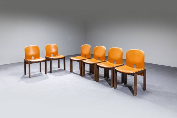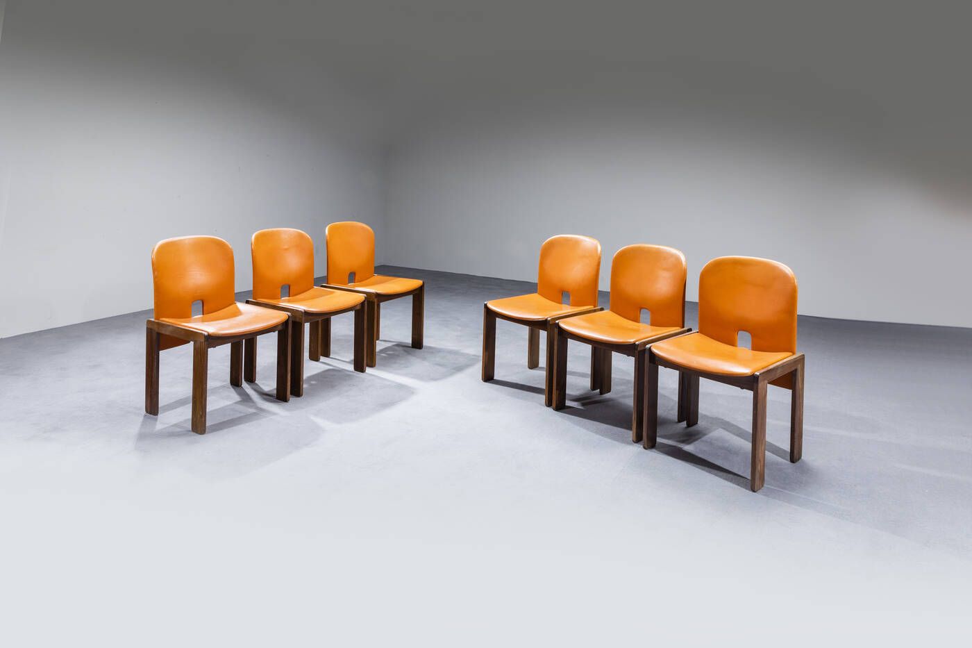 Sedie che accoppiano seduta e schienale uguali strutture portanti differenti. Prod. B&B 1974 cm 81x47 5x53 Bibl.: Giuliana Gramigna Repertorio del Design Italiano1950-2000 Allemandi 2011 pag. 223. Difetti