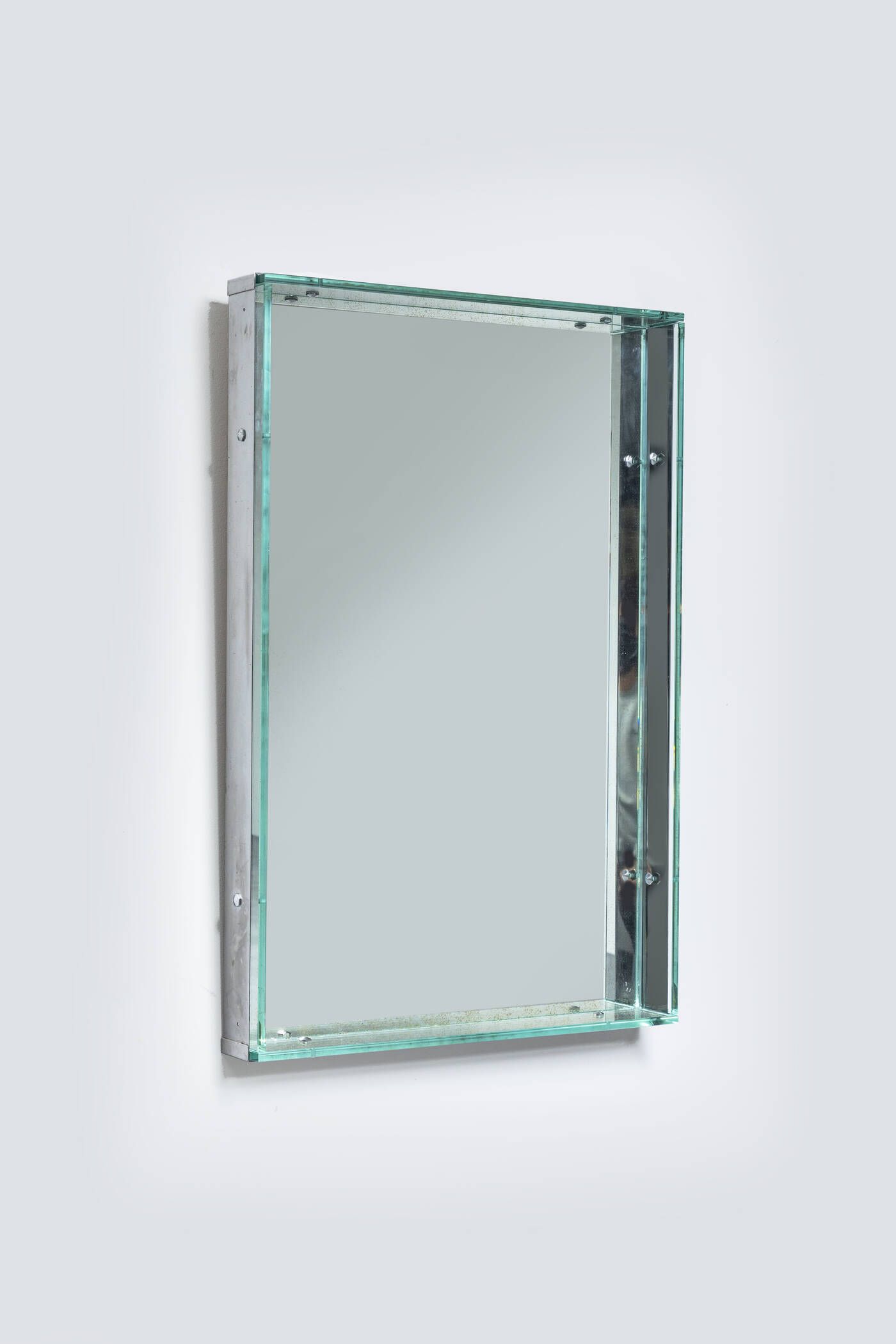 Bordo in vetro struttura in metallo. Anni '70 cm 99x66 5x10