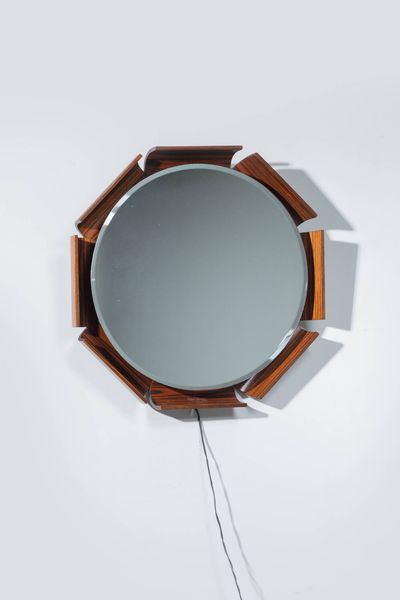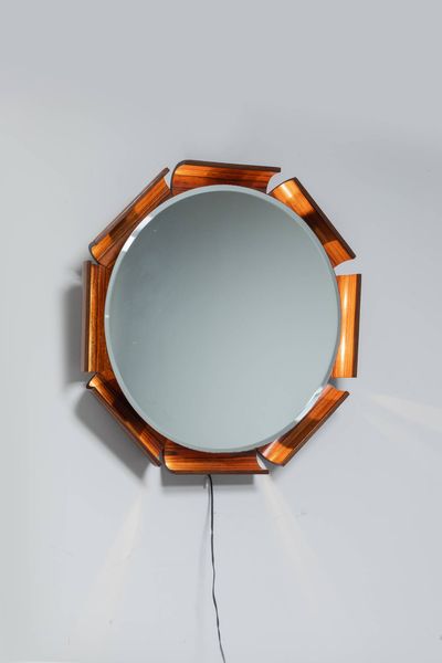 Struttura in compensato curvato con specchiera retro illuminata. Prod. I.S.A anni '60 cm 71x69