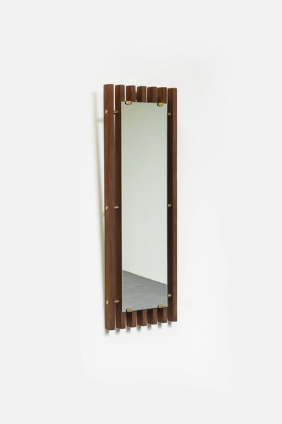 Specchio con struttura listellare in legno e ottone cristallo specchiato. Anni [..]