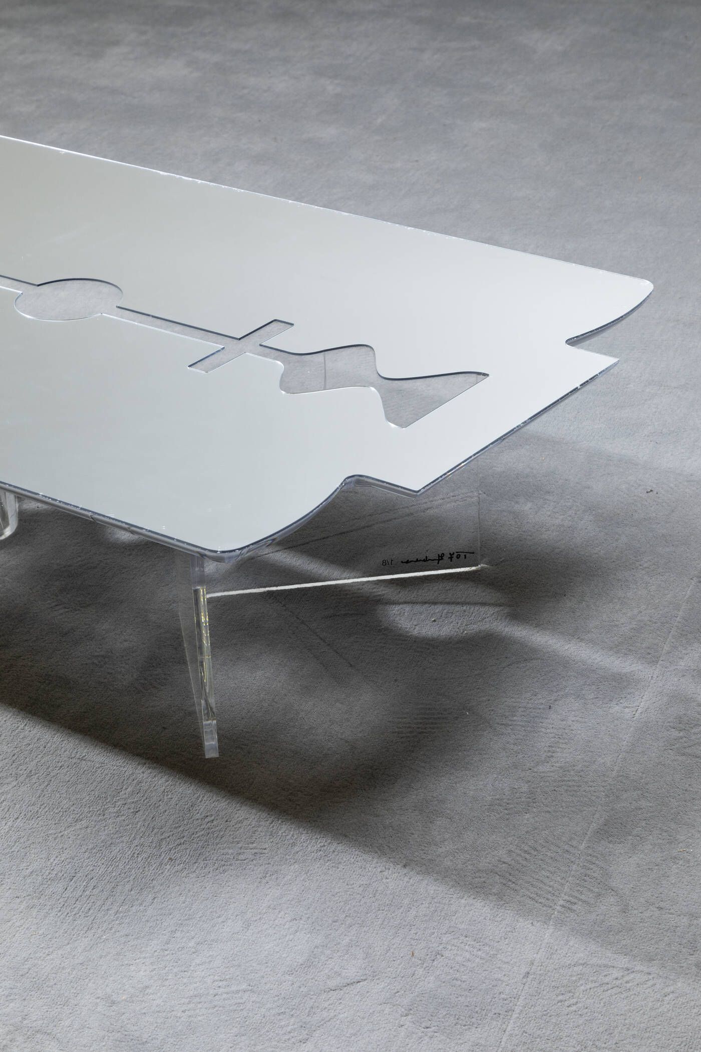 Tavolino in plexiglass. Firma dell'artista sulla base e numerazione 1 di 8 Anni [..]