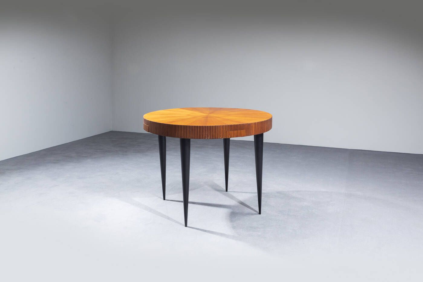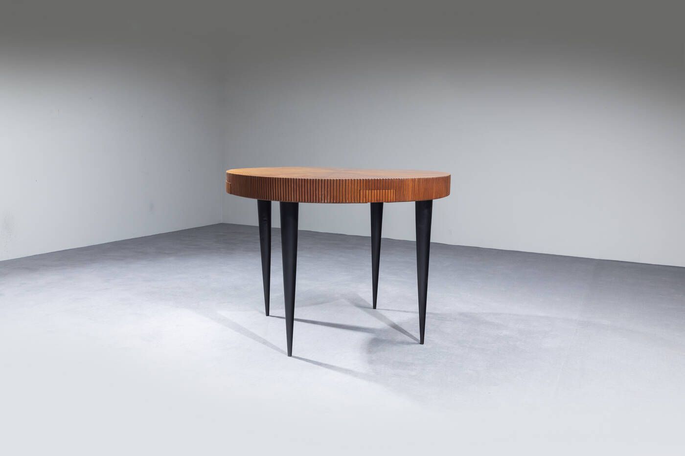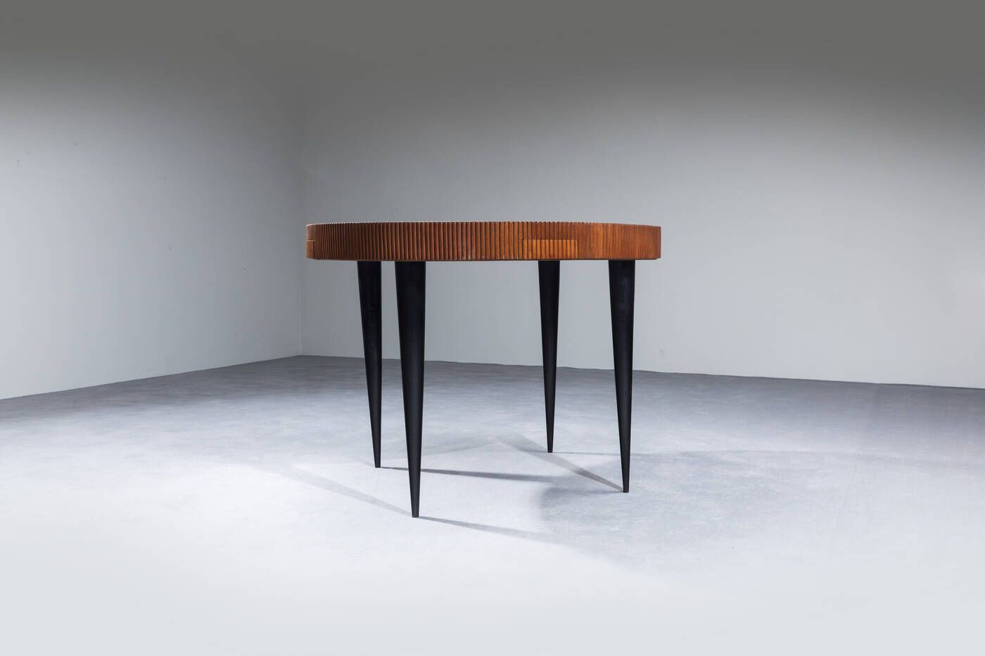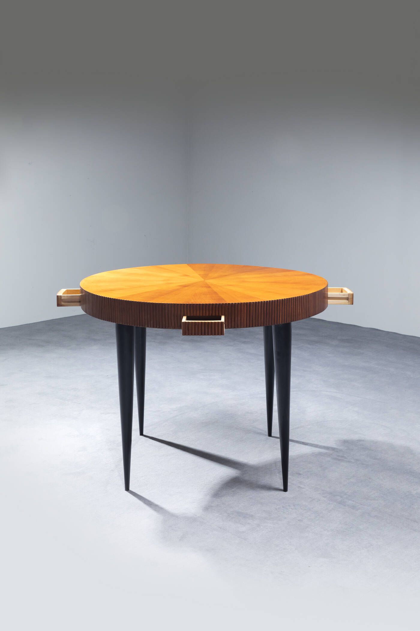 Tavolo con piano in legno bordo grissinato cassetti a scomparsa gambe coniche in legno laccato nero. Anni '50 cm 78x105 Corredato dell'Expertise del Gio Ponti Archives