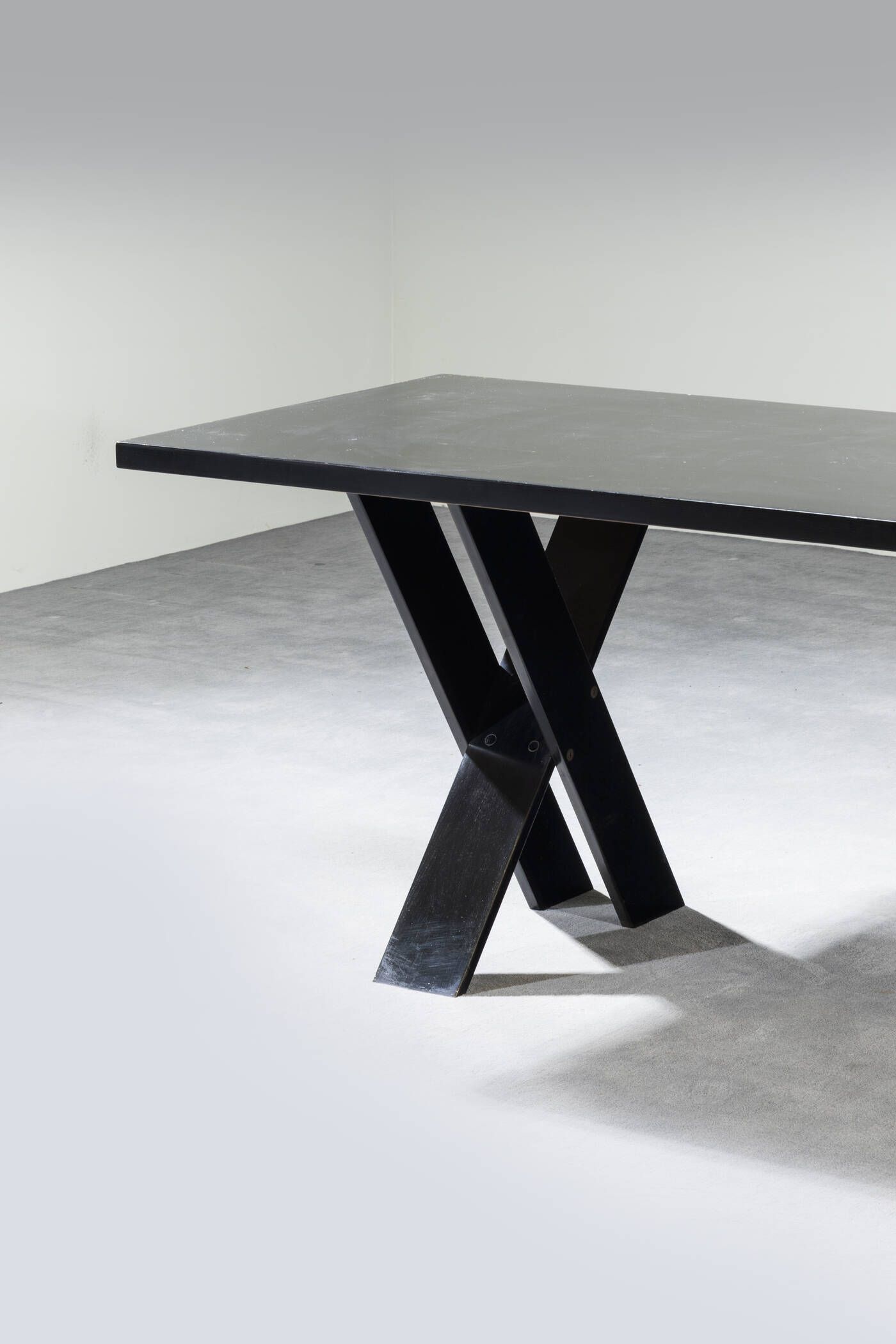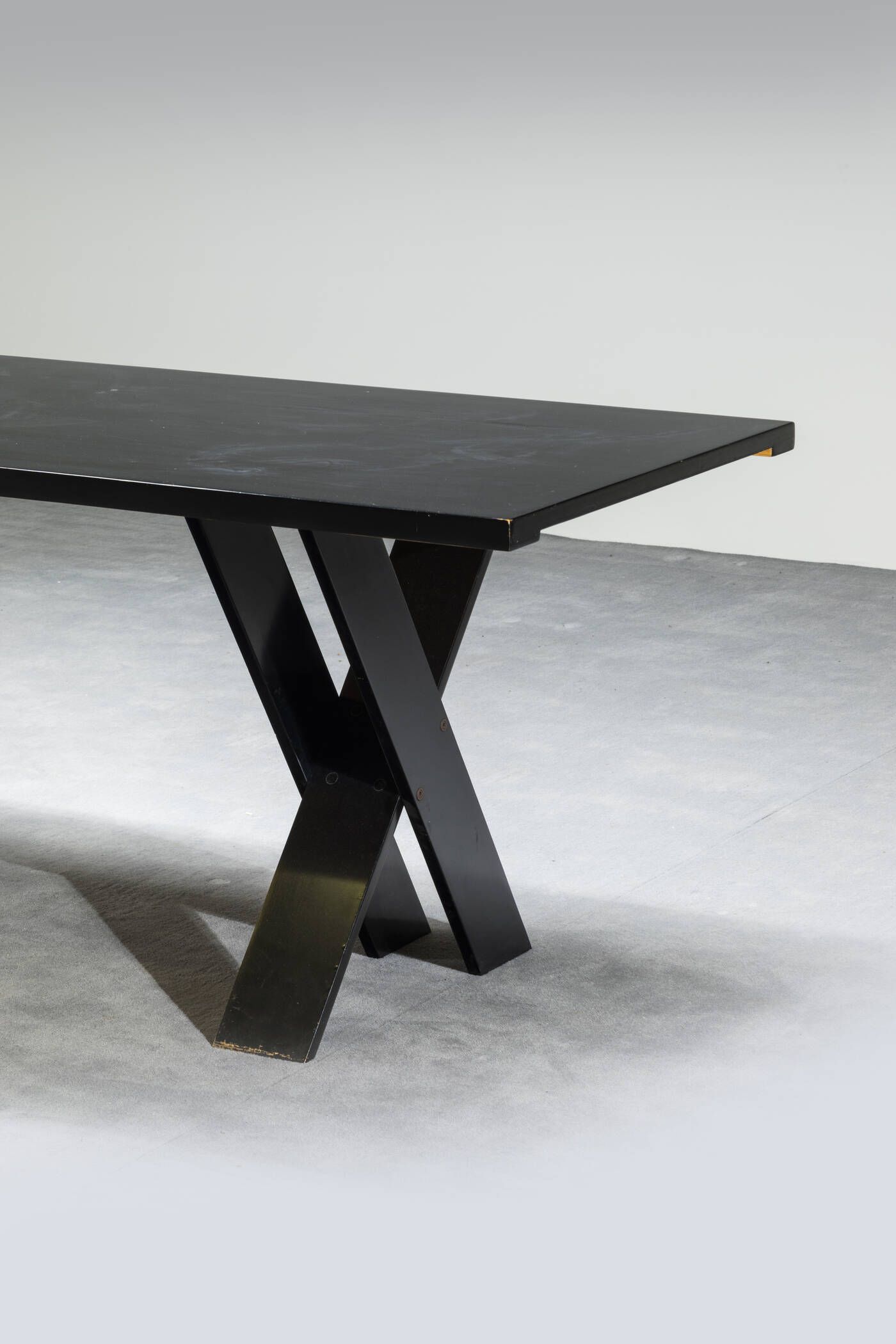 Legno di noce massiccio e piano in paniforte laccato. Prod. Poggi anni '70 cm 72x240x76 Bibl.: Giuliana Gramigna Repertorio del Design Italiano1950-2000 Allemandi 2011 pag. 224