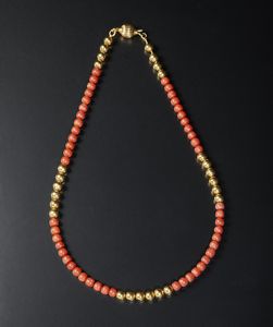 Catenina con piccoli inserti in oro giallo 18 carati con ciondolo in osso