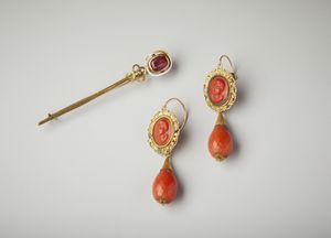 Montature probabilmente in oro e argentoMisura del profilo femminile: 5 x 4 cmMisura della Tersicore: 2,5 x 2 [..]