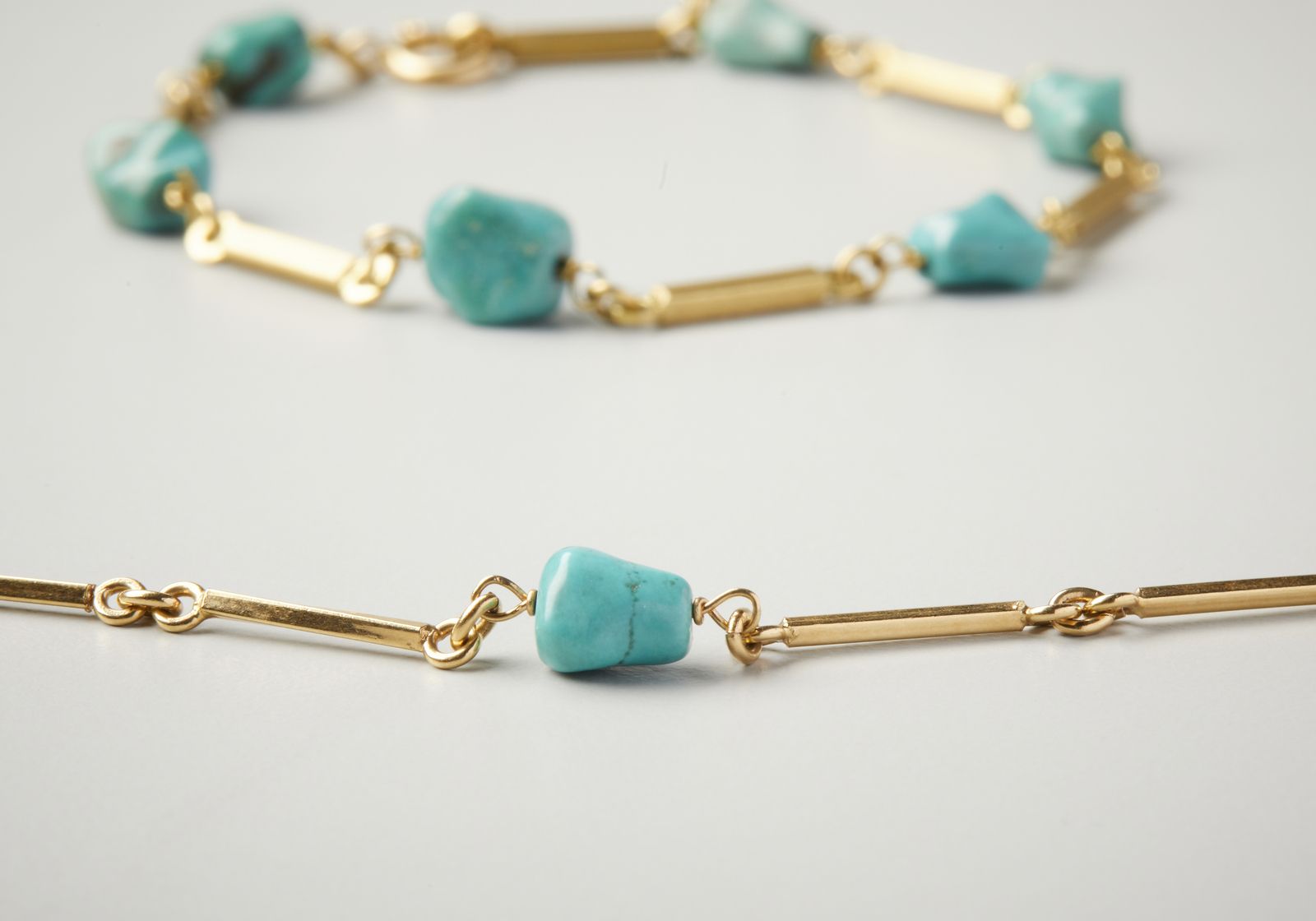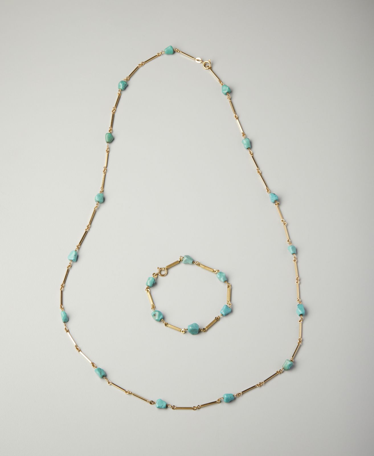 Collana e bracciale in oro giallo 18 carati con 'pepite' di turchese naturale