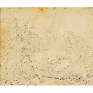 10x11,5 cm. XIX Sec. Compianto su Cristo morto, da Coreggio, inchiostro su carta