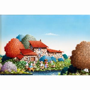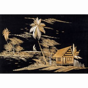 16x20 cm. XX Sec. Palafitta, tecnica mista su tessuto