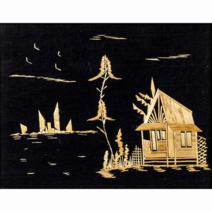 18x27 cm. XX Sec. Palafitta, tecnica mista su tessuto