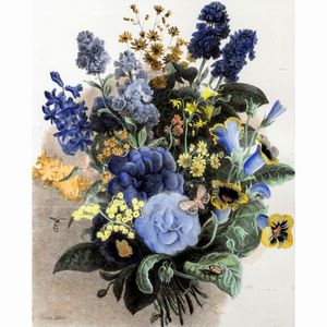 60x51 cm. Mannheim, Germania 1843 - Stoccarda, Germania 1926 Composizione floreale con insetti, stampa su car [..]