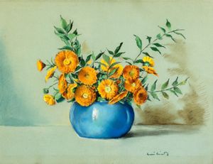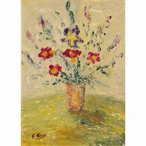 39x29 cm. XX Sec. Vaso di fiori, olio su tavola, firmato in basso a sinistra