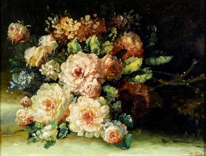 30x40 cm. XX Sec. Natura morta di fiori, olio su tela, firmato in basso a destra