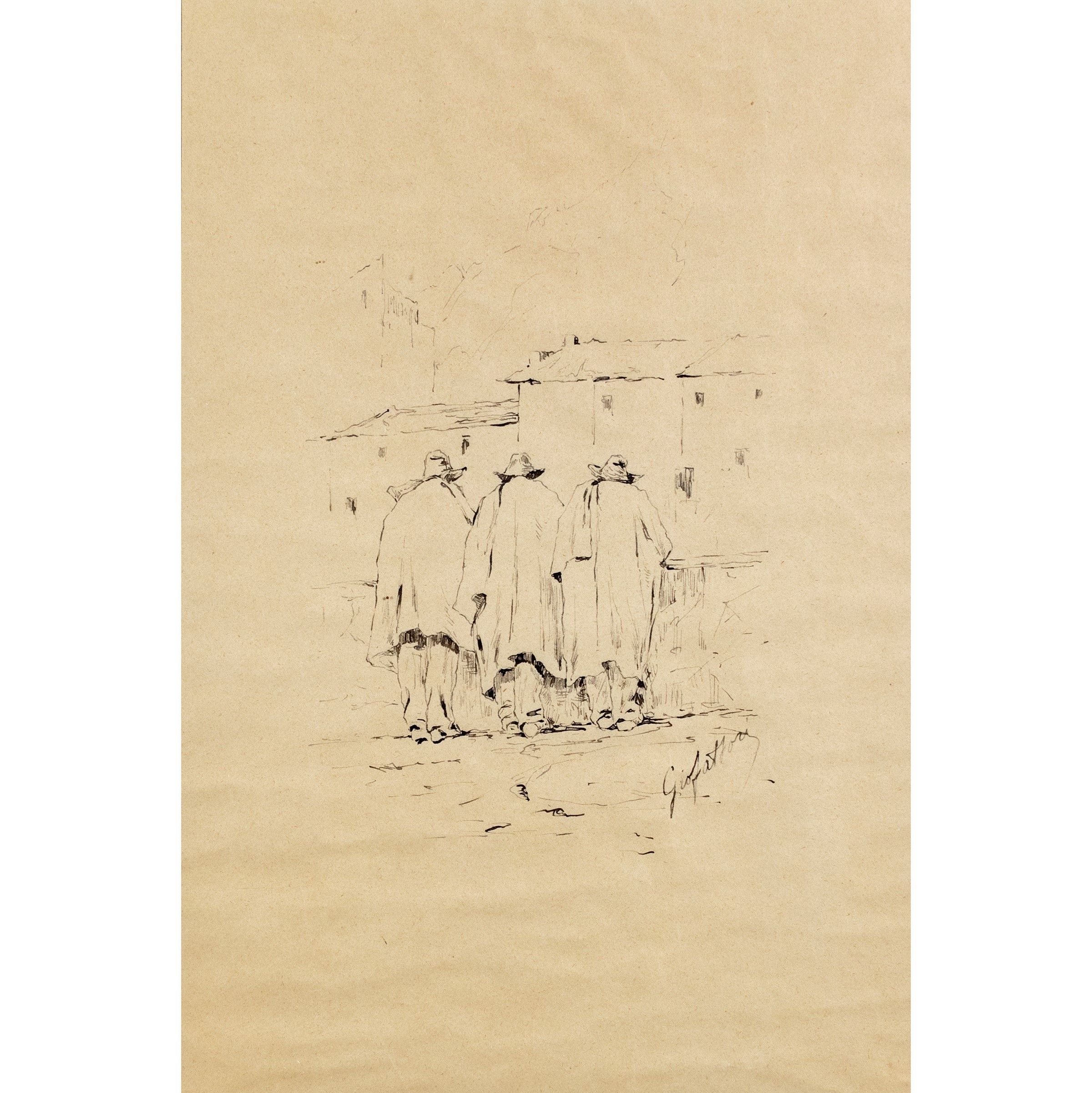 XIX-XX Sec. Figure, china su carta, firmata in basso a destra