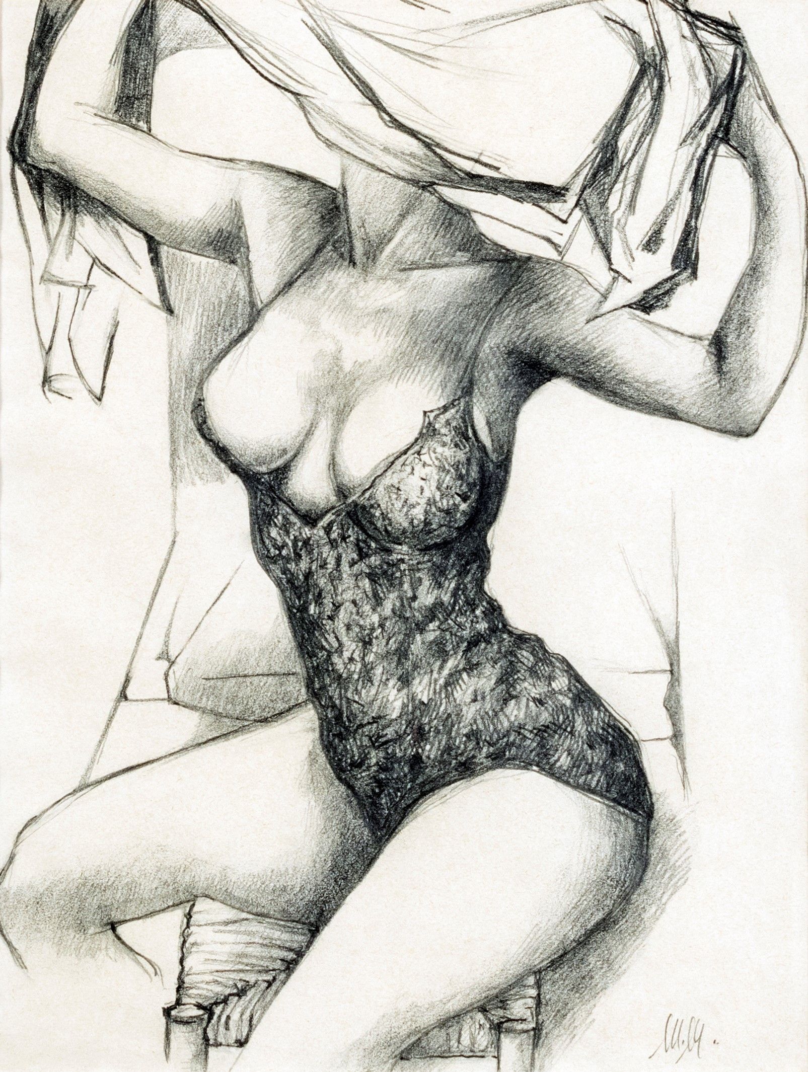 Italia, XX Sec. Ritratto femminile, matita su carta, firmata in basso a destra